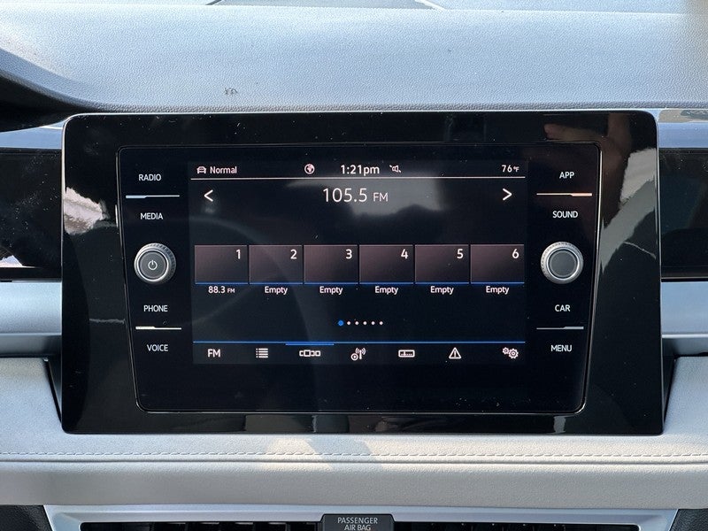 • Radio: MIB3 Composition Media AM/FM/HD -inc: 8" touchscreen multifunction center display, WMA/MP3/FLAC player w/USB-C, voice control, capability for in-vehicle 4G LTE enabled Wi-Fi (cellular data plan required; includes limited trial), capability for VW Car-Net services (capabilities for certain services vary; requires enrollment or subscription), 6-speaker sound system, Bluetooth® connectivity (for compatible devices), SiriusXM w/360L (w/3-month free trial subscription; 360L services require acceptance of Car-Net terms), App-Connect smartphone integration (w/Apple CarPlay, Android Auto and MirrorLink) via USB, wireless App-Connect smartphone integration (for compatible devices) w/multi-phone pairing capability, USB-C enhanced charging up to 45W (for compatible devices) and Qi wireless inductive charger (for compatible mobile phones and accessories) All VW Car-Net services subject to terms & limitations. Some services require a paid subscription. See dealer or vw.com/carnet for details.