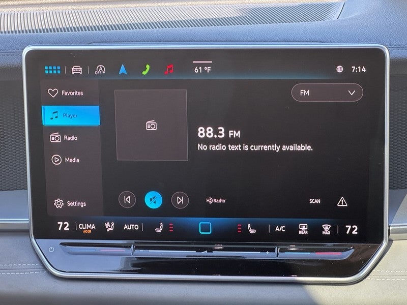 - Radio: MIB4 Composition Media Touchscreen AM/FM -inc: WMA/MP3/FLAC player w/USB, 12.9" touchscreen multi-function center display w/backlit sliders, voice control, 6 speakers + center speaker (7 speakers total) sound system, capability for in-vehicle 4G LTE enabled Wi-Fi (cellular data plan required; includes limited trial), capability for VW Car-Net services (capabilities for services vary; requires enrollment or subscription), Bluetooth® connectivity (for compatible devices), SiriusXM w/360L (w/3-month free trial subscription; 360L services require acceptance of Car-Net terms), App-Connect smartphone integration (w/Apple CarPlay, Android Auto and MirrorLink) via USB, wireless App-Connect smartphone integration (for compatible devices) w/multi-phone pairing capability, 45W fast charging (for compatible mobile phones and accessories) via USB in both rows and Qi wireless inductive charger, cooled, up to 15W (for compatible mobile phones and accessories)