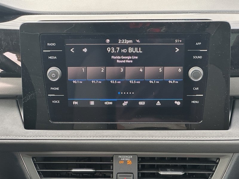 - Radio: MIB3 Composition Media AM/FM/HD -inc: 8" touchscreen multifunction center display, WMA/MP3/FLAC player w/USB-C, voice control, capability for in-vehicle 4G LTE enabled Wi-Fi (cellular data plan required; includes limited trial), capability for connected vehicle services (capabilities for services vary; requires enrollment or subscription), 6-speaker sound system, Bluetooth® connectivity (for compatible devices), SiriusXM w/360L (w/3-month free trial subscription; 360L services require acceptance of Car-Net terms), App-Connect smartphone integration (w/Apple CarPlay, Android Auto and MirrorLink) via USB, wireless App-Connect smartphone integration (for compatible devices) w/multi-phone pairing capability, USB-C enhanced charging up to 45W (for compatible devices) and Qi wireless inductive charger (for compatible mobile phones and accessories) All connected vehicle services subject to terms & limitations. Some services require a paid subscription. See dealer or vw.com/connected for details.