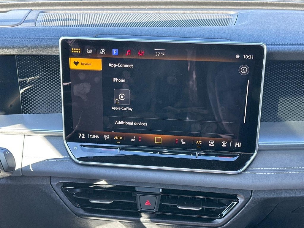 - MIB4 Composition Media Touchscreen w/AM/FM Radio -inc: WMA/MP3/FLAC player w/USB, 12.9" touchscreen multi-function center display w/backlit sliders, voice control, 6 speakers + center speaker (7 speakers total) sound system, capability for in-vehicle 4G LTE enabled Wi-Fi (cellular data plan required; includes limited trial), capability for connected vehicle services (capabilities for services vary; requires enrollment or subscription), Bluetooth® connectivity (for compatible devices), SiriusXM w/360L (w/3-month free trial subscription; 360L services require acceptance of Car-Net terms), App-Connect smartphone integration (w/Apple CarPlay, Android Auto and MirrorLink) via USB, wireless App-Connect smartphone integration (for compatible devices) w/multi-phone pairing capability, 45W fast charging (for compatible mobile phones and accessories) via USB in both rows and Qi wireless inductive charger, cooled, up to 15W (for compatible mobile phones and accessories) All connected vehicle services are subject to terms and limitations. Some services require a paid subscription. See dealer or vw.com/connected for important details.