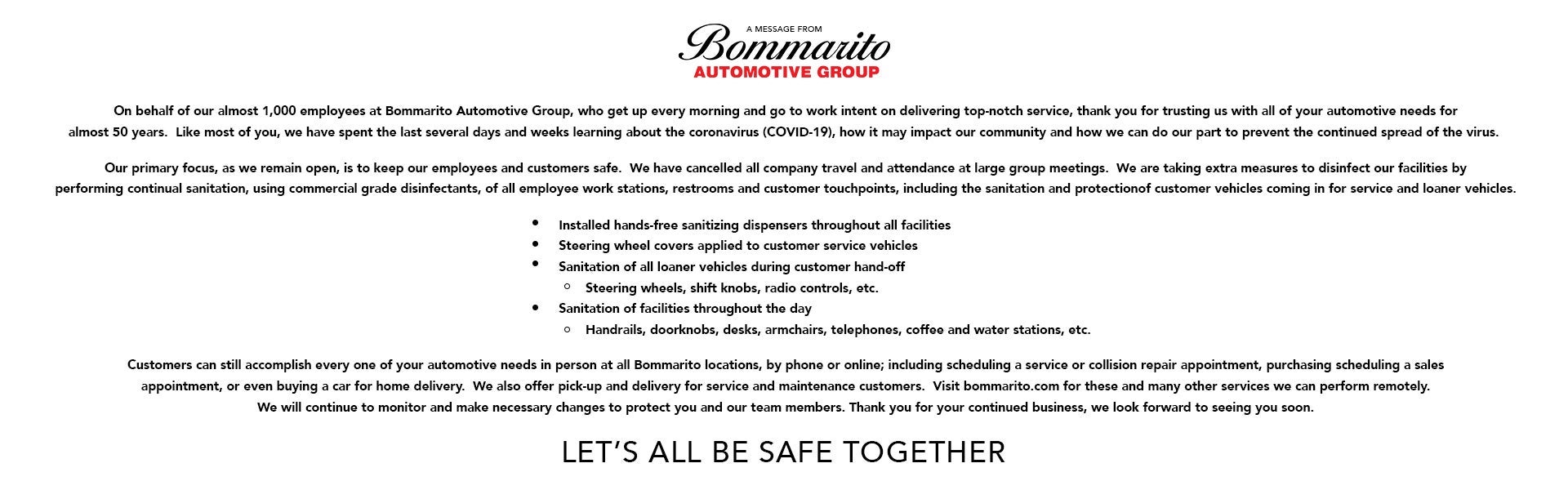 We will provide transportation to and from our Bommarito St. Peters Showroom/Service Center. Our team will arrange to have your vehicle picked up from your home or office and brought back to you after the service work is done. We will even provide a loaner vehicle based on vehicle services being completed, as needed.