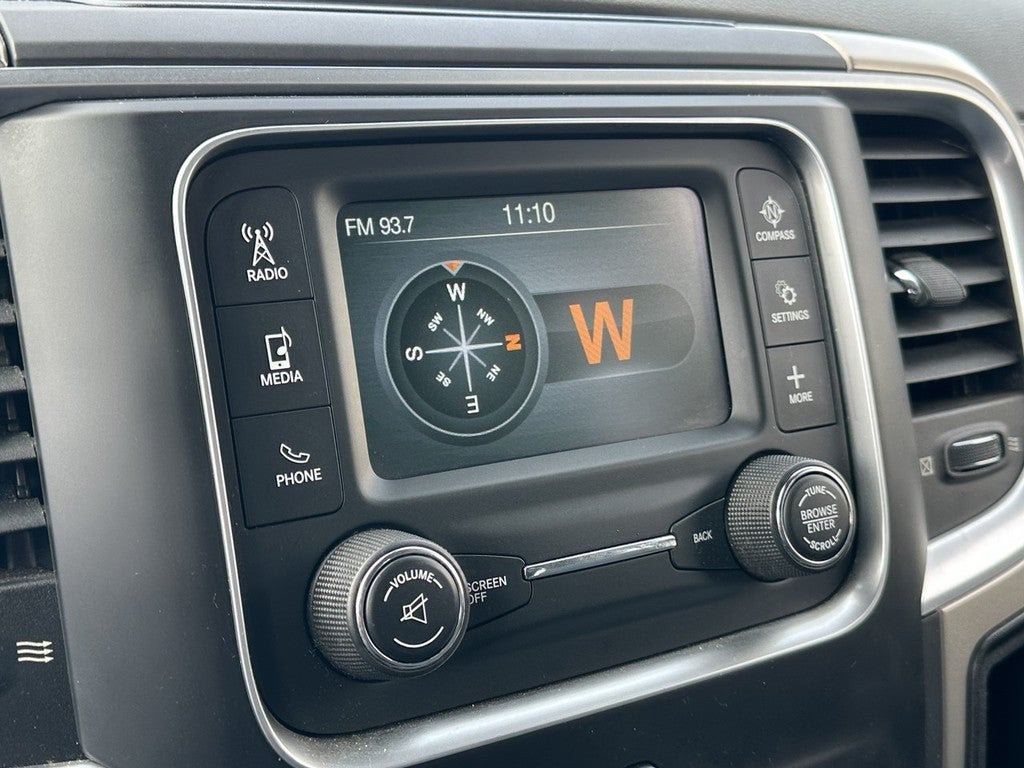 This 1500 is well equipped with ABS brakes, Alloy wheels, Compass, Electronic Stability Control, Heated door mirrors, Illuminated entry, Low tire pressure warning, Remote keyless entry, Traction control, 17" x 7" Aluminum Wheels, 26 Gallon Fuel Tank, 3.21 Rear Axle Ratio, 4-Wheel Disc Brakes, 40/20/40 Split Bench Seat, 6 Speakers, Active Grille Shutters, Air Conditioning, AM/FM radio, Black Exterior Mirrors, Brake assist, Bumpers: chrome, Center Hub, Charge Only Remote USB Port, Cloth 40/20/40 Bench Seat, Delay-off headlights, Driver door bin, Dual front impact airbags, Dual front side impact airbags, Electronic Shift, Exterior Mirrors w/Heating Element, Front anti-roll bar, Front Armrest w/Three Cupholders, Front Center Armrest w/Storage, Front reading lights, Front wheel independent suspension, Fully automatic headlights, GPS Antenna Input, Integrated Voice Command w/Bluetooth®, Occupant sensing airbag, Outside temperature display, Overhead airbag, Overhead console, Panic alarm, Passenger door bin, Passenger vanity mirror, Power door mirrors, Power steering, Power windows, Radio data system, Radio: Uconnect 5.0 AM/FM/BT, Rear anti-roll bar, Rear step bumper, SIRIUSXM Satellite Radio, Speed control, Tachometer, Tilt steering wheel, Tip Start, Trip computer, Variably intermittent wipers, and Voltmeter.