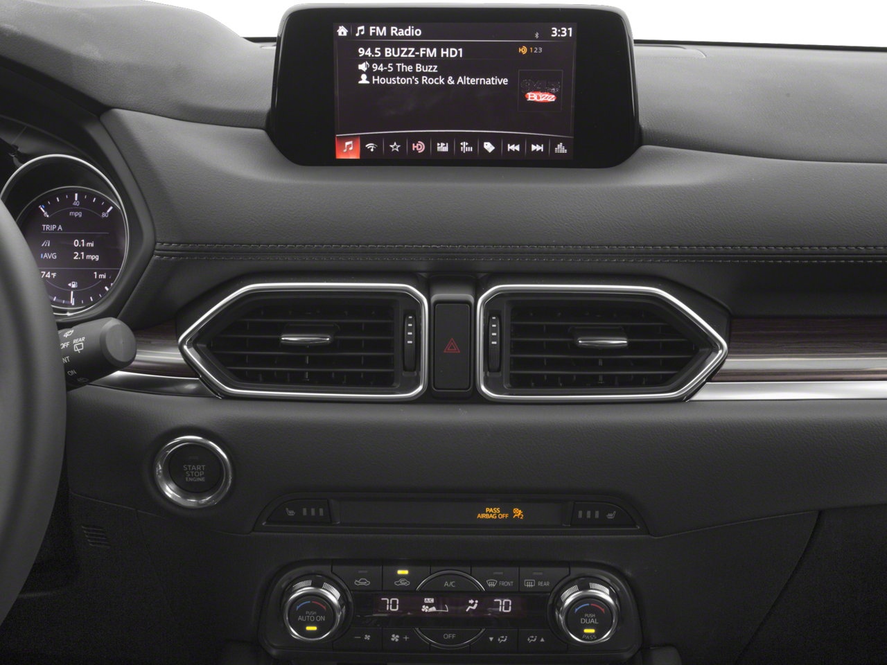 This Mazda CX-5 is well equipped with 10 Speakers, 19 x 7J Aluminum Alloy Wheels, 4-Wheel Disc Brakes, 4.325 Axle Ratio, ABS brakes, Air Conditioning, Alloy wheels, AM/FM radio: SiriusXM, Auto High-beam Headlights, Auto-dimming Rear-View mirror, Automatic temperature control, Bose 10-Speaker Audio Sound System, Brake assist, Bumpers: body-color, Delay-off headlights, Driver door bin, Driver vanity mirror, Dual front impact airbags, Dual front side impact airbags, Electronic Stability Control, Emergency communication system, Exterior Parking Camera Rear, Four wheel independent suspension, Front anti-roll bar, Front Bucket Seats, Front Center Armrest, Front dual zone A/C, Front fog lights, Front reading lights, Fully automatic headlights, Garage door transmitter: HomeLink, Heated door mirrors, Heated front seats, Heated Front Sport Shape Seats, Illuminated entry, Leather Seat Trim, Leather Shift Knob, Low tire pressure warning, Mazda Navigation System, Memory seat, Navigation System, Occupant sensing airbag, Outside temperature display, Overhead airbag, Overhead console, Panic alarm, Passenger door bin, Passenger vanity mirror, Power door mirrors, Power driver seat, Power Liftgate, Power moonroof, Power passenger seat, Power steering, Power windows, Radio data system, Radio: AM/FM/HD Audio System, Rain sensing wipers, Rear anti-roll bar, Rear reading lights, Rear seat center armrest, Rear window defroster, Rear window wiper, Remote keyless entry, Speed control, Speed-sensing steering, Split folding rear seat, Spoiler, Steering wheel mounted audio controls, Tachometer, Telescoping steering wheel, Tilt steering wheel, Traction control, Trip computer, Turn signal indicator mirrors, and Variably intermittent wipers.
