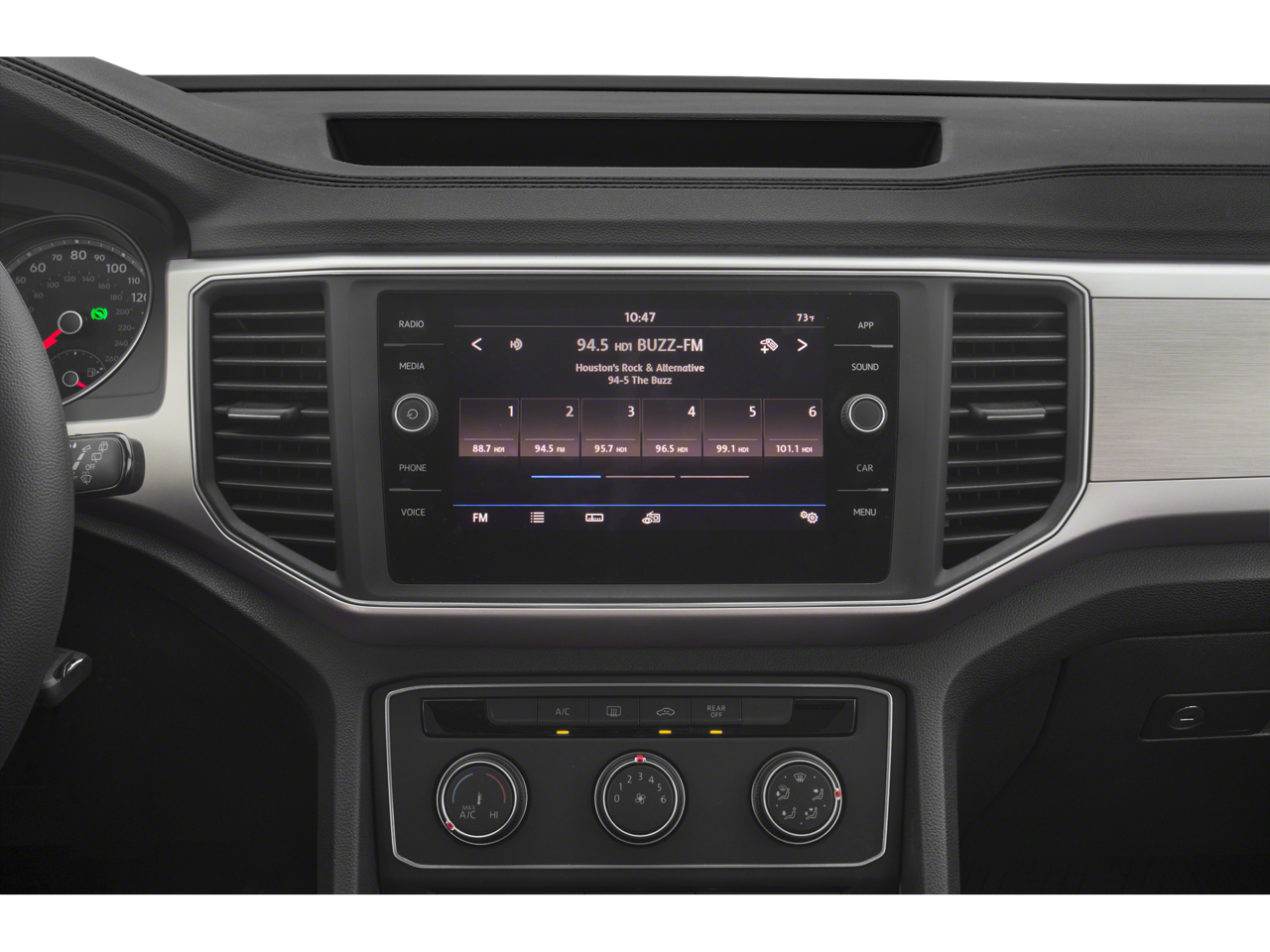 This Atlas is well equipped with 18" 5-Spoke Wheels, 3.60 Axle Ratio, 3rd row seats: split-bench, 4-Wheel Disc Brakes, 8 Speakers, ABS brakes, Active Blind Spot Monitor, Air Conditioning, Alloy wheels, AM/FM radio: SiriusXM, Auto-dimming Rear-View mirror, Automatic temperature control, Brake assist, Bumpers: body-color, Compass, Delay-off headlights, Driver door bin, Driver vanity mirror, Dual front impact airbags, Dual front side impact airbags, Electronic Stability Control, Emergency communication system: VW Car-Net services (capabilities require enrollment or subscription), Exterior Parking Camera Rear, Forward collision: FCW w/Autonomous Emergency Braking mitigation, Four wheel independent suspension, Front anti-roll bar, Front Bucket Seats, Front Center Armrest, Front dual zone A/C, Front fog lights, Front reading lights, Heated Comfort Front Bucket Seats, Heated door mirrors, Heated front seats, Illuminated entry, Low tire pressure warning, Occupant sensing airbag, Outside temperature display, Overhead airbag, Overhead console, Panic alarm, Passenger door bin, Passenger vanity mirror, Power door mirrors, Power driver seat, Power Liftgate, Power steering, Power windows, Radio data system, Radio: Composition Media 8.0" Touchscreen, Rain sensing wipers, Rear air conditioning, Rear anti-roll bar, Rear reading lights, Rear seat center armrest, Rear window defroster, Rear window wiper, Remote CD player, Remote keyless entry, Roof rack: rails only, Security system, Speed control, Speed-sensing steering, Split folding rear seat, Spoiler, Standard Suspension, Steering wheel mounted audio controls, Tachometer, Telescoping steering wheel, Tilt steering wheel, Traction control, Trip computer, Turn signal indicator mirrors, V-Tex Leatherette Seating Surfaces, and Variably intermittent wipers.