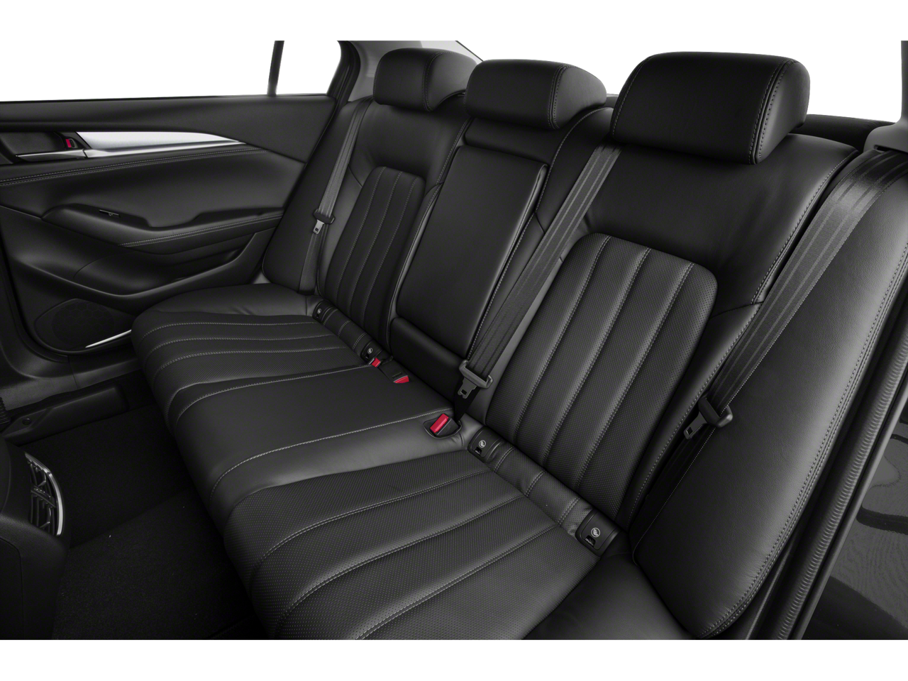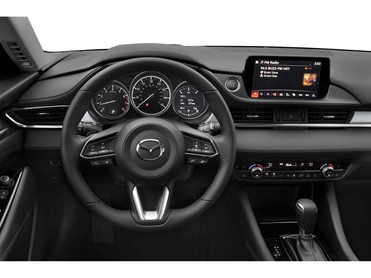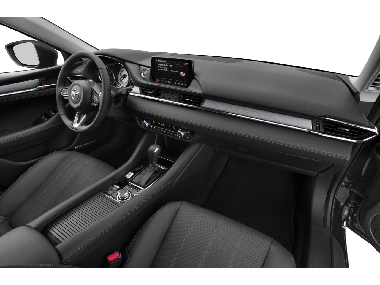 This Mazda Mazda6 is well equipped with 11 Speakers, 3-Level Heated/Ventilated Front Sport Bucket Seats, 4-Wheel Disc Brakes, ABS brakes, Air Conditioning, Alloy wheels, AM/FM radio: SiriusXM, Anti-whiplash front head restraints, AppLink/Apple CarPlay and Android Auto, Auto High-beam Headlights, Auto-dimming door mirrors, Auto-dimming Rear-View mirror, Automatic temperature control, Brake assist, Bumpers: body-color, Compass, Delay-off headlights, Driver door bin, Driver vanity mirror, Dual front impact airbags, Dual front side impact airbags, Electronic Stability Control, Emergency communication system: MAZDA CONNECT, Exterior Parking Camera Rear, Four wheel independent suspension, Front anti-roll bar, Front Bucket Seats, Front Center Armrest w/Storage, Front dual zone A/C, Front reading lights, Fully automatic headlights, Garage door transmitter: HomeLink, Heads-Up Display, Heated door mirrors, Heated front seats, Heated rear seats, Heated steering wheel, Illuminated entry, Leather Seat Trim, Leather Shift Knob, Low tire pressure warning, MAZDA CONNECT Infotainment System Voice Command, Memory seat, Occupant sensing airbag, Outside temperature display, Overhead airbag, Overhead console, Panic alarm, Passenger door bin, Passenger vanity mirror, Power door mirrors, Power driver seat, Power moonroof, Power passenger seat, Power steering, Power windows, Radio data system, Radio: AM/FM/HD, Rain sensing wipers, Rear anti-roll bar, Rear reading lights, Rear seat center armrest, Rear window defroster, Remote keyless entry, Speed control, Speed-sensing steering, Split folding rear seat, Spoiler, Steering wheel mounted audio controls, Tachometer, Telescoping steering wheel, Tilt steering wheel, Traction control, Trip computer, Turn signal indicator mirrors, Variably intermittent wipers, Ventilated Front Seats, Ventilated front seats, and Wheels: 19" x 7.5J w/Brilliant Silver Finish.