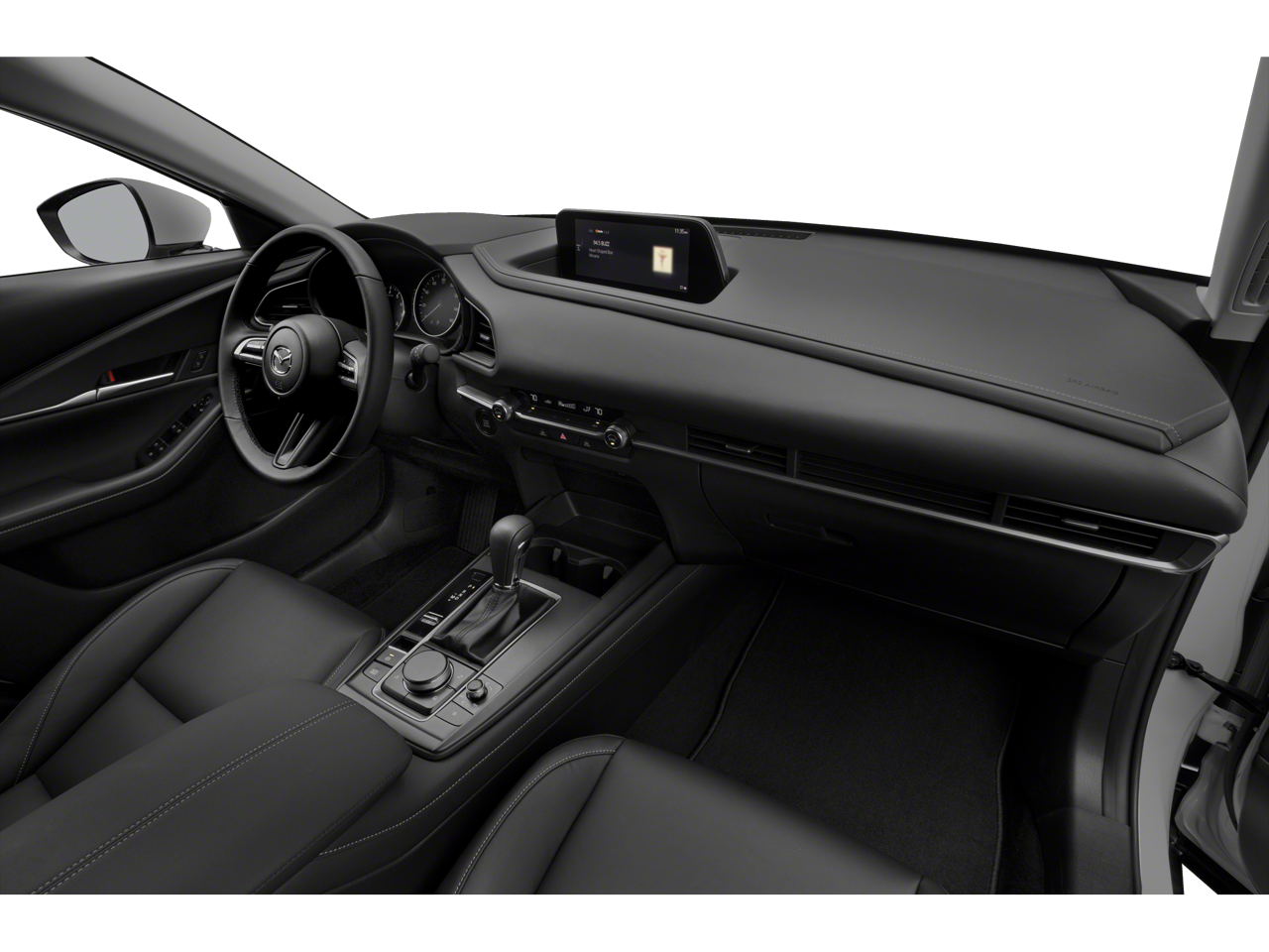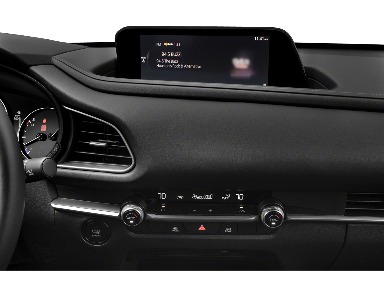 This Mazda CX-30 is well equipped with Select Package, 18" x 7J Alloy Wheels, 3.626 Axle Ratio, 4-Wheel Disc Brakes, 8 Speakers, ABS brakes, Air Conditioning, Alloy wheels, AM/FM radio, AppLink/Apple CarPlay and Android Auto, Auto High-beam Headlights, Automatic temperature control, Brake assist, Bumpers: body-color, Cargo Mat, Compass, Delay-off headlights, Driver door bin, Driver vanity mirror, Dual front impact airbags, Dual front side impact airbags, Electronic Stability Control, Emergency communication system: MAZDA CONNECT, Exterior Parking Camera Rear, Front anti-roll bar, Front Bucket Seats, Front Center Armrest, Front dual zone A/C, Front reading lights, Front wheel independent suspension, Fully automatic headlights, Illuminated entry, Knee airbag, Leather Shift Knob, Leather steering wheel, Leatherette Seat Trim, Low tire pressure warning, MAZDA CONNECT Infotainment System Voice Command, Occupant sensing airbag, Outside temperature display, Overhead airbag, Panic alarm, Passenger door bin, Passenger vanity mirror, Power door mirrors, Power steering, Power windows, Radio data system, Radio: AM/FM Audio System, Rain sensing wipers, Rear seat center armrest, Rear window defroster, Rear window wiper, Remote keyless entry, Speed control, Speed-sensing steering, Split folding rear seat, Spoiler, Steering wheel mounted audio controls, Tachometer, Telescoping steering wheel, Tilt steering wheel, Traction control, Trip computer, Turn signal indicator mirrors, and Variably intermittent wipers.