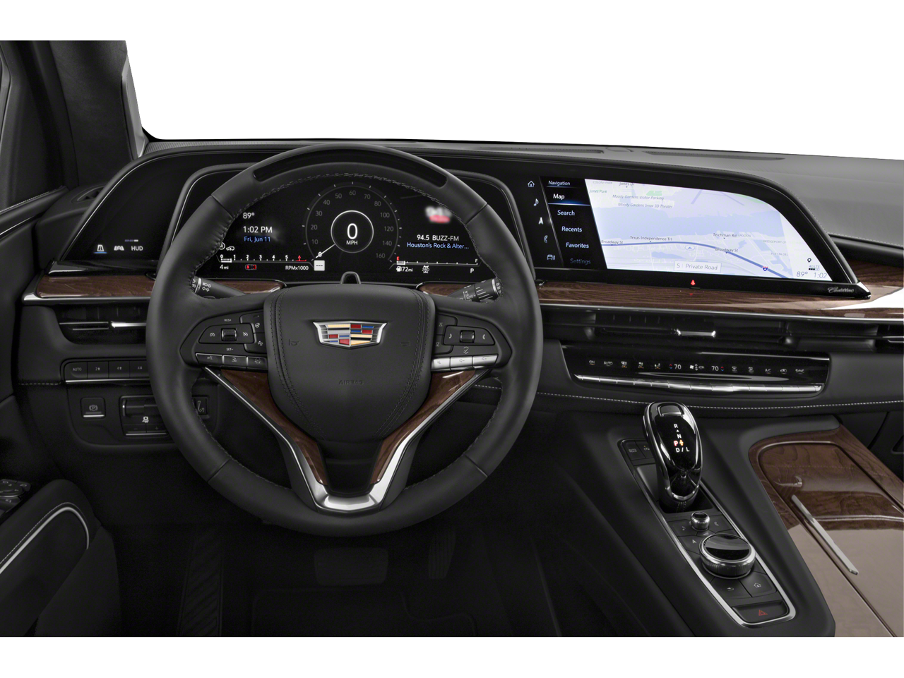 This Escalade is well equipped with Driver Assist Tech Package (Adaptive Cruise Control, Air Ride Adaptive Suspension, Automatic Seat Belt Tightening, Enhanced Automatic Emergency Braking, Illuminating Front & Rear Sill Plates, Reverse Automatic Braking, and Soft Closing Front & Rear Doors), Heavy-Duty Trailering Package (2-Speed Active Transfer Case, Extra Capacity Cooling System, Trailer Tire Pressure Monitoring System, Trailering Assist Guidelines, and Wired Auxiliary Trailer Camera (LPO)), Preferred Equipment Group 1SH (Air Ionizer, AKG Studio Reference 36-Speaker Audio System, Body-Color Door Handles, Door Lock & Latch Shields, Electronic Limited-Slip Differential, Enhanced Automatic Parking Assist, Floor Console w/Covered Storage, Glass Breakage Sensor, Hitch Guidance w/Hitch View, In-Vehicle Trailering System App, Integrated Trailer Brake Controller, Lane Keep Assist w/Lane Departure Warning, Platinum Interior Trim, Power Panoramic Tilt-Sliding Sunroof, Rear Camera Mirror, Rear Camera Mirror Washer, Rear Cross Traffic Alert, Rear Seat Entertainment System, Reconfigurable Full-Color Head-Up Display, Running Board Assist Steps, Theft-Deterrent Alarm System, Trailer Side Blind Zone Alert, Vehicle Inclination Sensor, and Vehicle Interior Movement Sensor), 4WD, Dark Auburn With Jet Black Accents Leather, 16.9" Diagonal OLED Infotainment Screen, 2-Presets Memory For Driver Seat Adjuster, 3.23 Axle Ratio, 3rd row seats: split-bench, 4-Way Power Driver Lumbar Seat Adjuster, 4-Way Power Front Passenger Lumbar Seat Adjuster, 4-Wheel Disc Brakes, 8-Way Power Driver Seat Adjuster, 8-Way Power Front Passenger Seat Adjuster, A/V remote, ABS brakes, Adaptive suspension, Air Conditioning, Alloy wheels, AM/FM radio: SiriusXM with 360L, Apple CarPlay/Android Auto, Audio memory, Auto High-beam Headlights, Auto tilt-away steering wheel, Auto-dimming door mirrors, Auto-dimming Rear-View mirror, Automatic temperature control, Brake assist, Bumpers: body-color, Compass, Cooled Console w/Covered Storage, Delay-off headlights, Door auto-latch, Driver door bin, Driver vanity mirror, Dual front impact airbags, Dual front side impact airbags, Electronic Stability Control, Emergency communication system: OnStar and Cadillac connected services capable, Four wheel independent suspension, Front anti-roll bar, Front Bucket Seats, Front Center Armrest w/Storage, Front dual zone A/C, Front reading lights, Front Reflective Window Shade (LPO), Full Semi-Aniline Leather Seats, Fully automatic headlights, Garage door transmitter, Genuine wood console insert, Genuine w