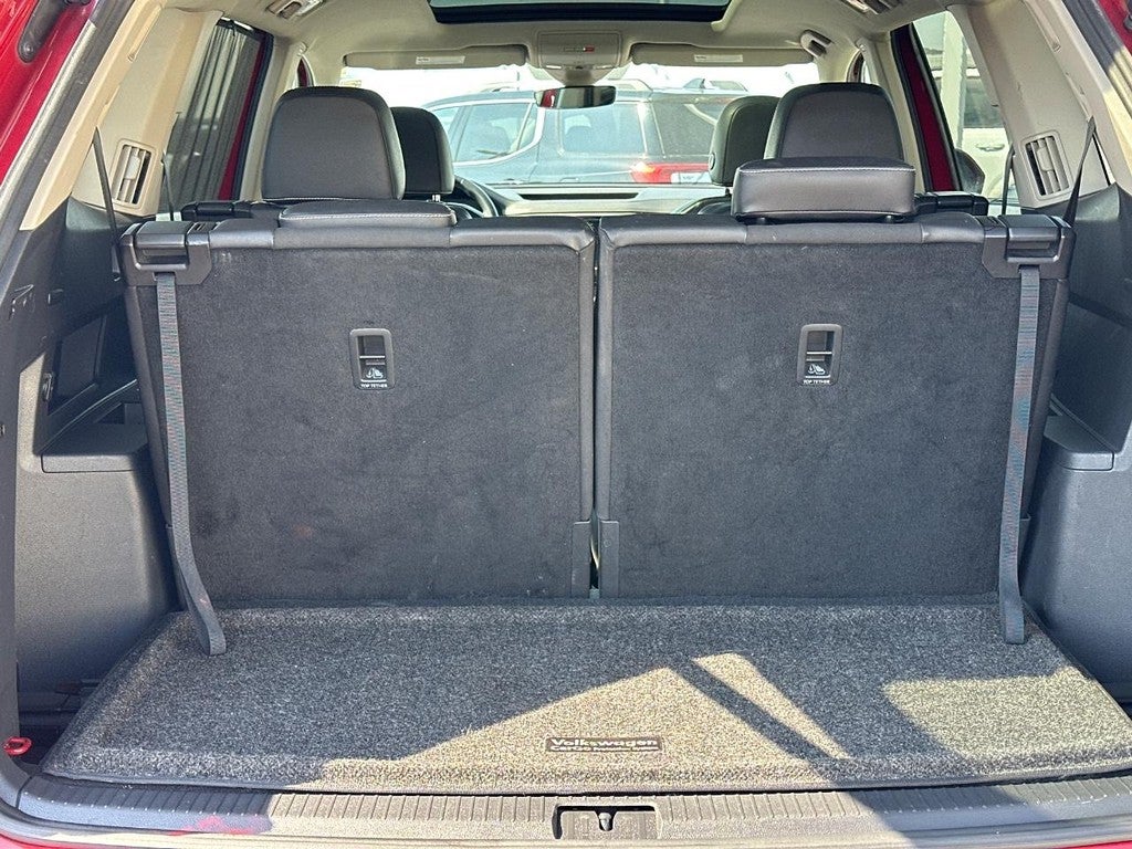 This Atlas is well equipped with 12 Speakers, 2nd-Row Dual Captain's Chairs, 3.60 Axle Ratio, 3rd row seats: split-bench, 4-Wheel Disc Brakes, ABS brakes, Air Conditioning, Alloy wheels, Auto High-beam Headlights, Auto-dimming Rear-View mirror, Automatic temperature control, Brake assist, Bumpers: body-color, Compass, Delay-off headlights, Driver door bin, Driver vanity mirror, Dual front impact airbags, Dual front side impact airbags, Electronic Stability Control, Emergency communication system: VW Car-Net services (capabilities require enrollment or subscription), Four wheel independent suspension, Front anti-roll bar, Front Bucket Seats, Front Center Armrest, Front dual zone A/C, Front fog lights, Front reading lights, Fully automatic headlights, Heated door mirrors, Heated front seats, Heated rear seats, Heated steering wheel, Heavy Duty Trunk Liner w/VW CarGo Blocks, Htd/Actively Ventilated Comfort Front Sport Seats, Illuminated entry, Leather Shift Knob, Low tire pressure warning, Memory seat, Navigation System, Occupant sensing airbag, Outside temperature display, Overhead airbag, Overhead console, Panic alarm, Passenger door bin, Passenger vanity mirror, Perforated Vienna Leather Seating Surfaces, Power door mirrors, Power driver seat, Power Liftgate, Power moonroof, Power passenger seat, Power steering, Power windows, Privacy Cover, Radio data system, Rain sensing wipers, Rear air conditioning, Rear anti-roll bar, Rear audio controls, Rear reading lights, Rear seat center armrest, Rear window defroster, Rear window wiper, Remote keyless entry, Roadside Assistance Kit, Roof rack: rails only, Rubber Mats Kit - Captain's Chairs, Security system, Speed control, Speed-sensing steering, Split folding rear seat, Spoiler, Standard Suspension, Steering wheel mounted audio controls, Tachometer, Telescoping steering wheel, Tilt steering wheel, Traction control, Trip computer, Turn signal indicator mirrors, Variably intermittent wipers, Ventilated front seats, and Wheels: 20" 5-Spoke 2-Tone Machined Alloy.