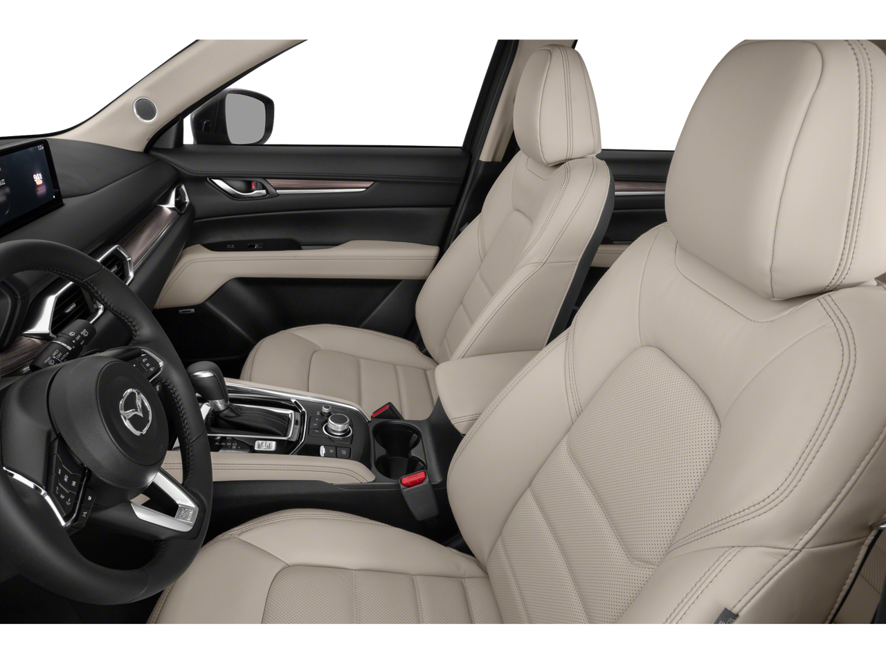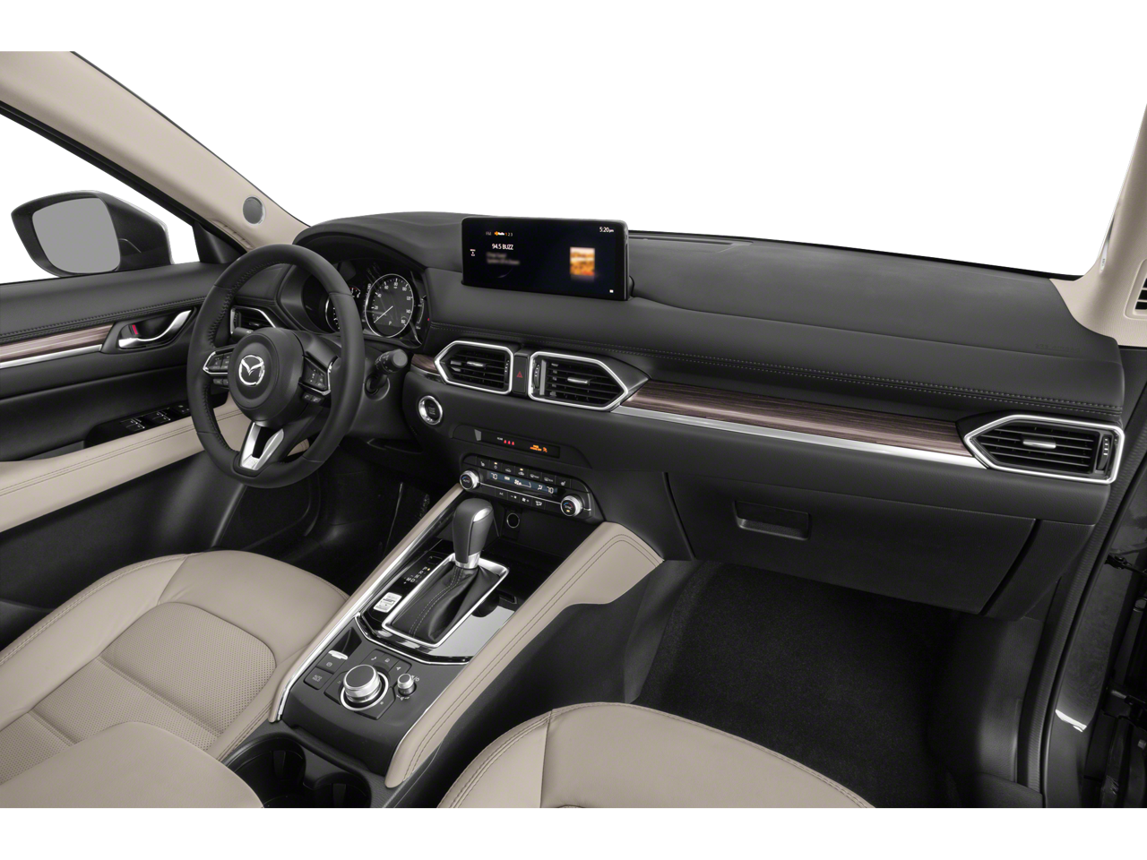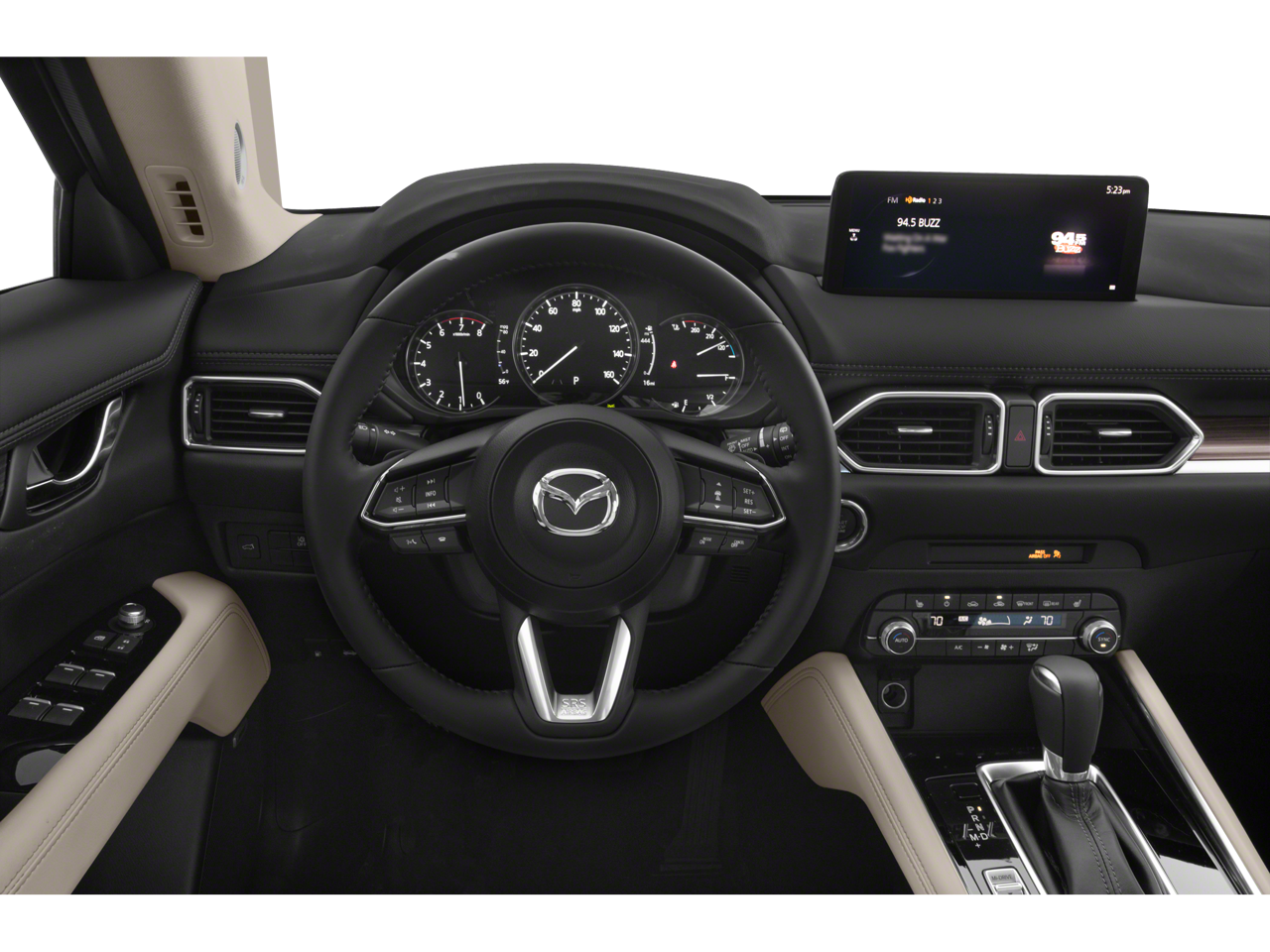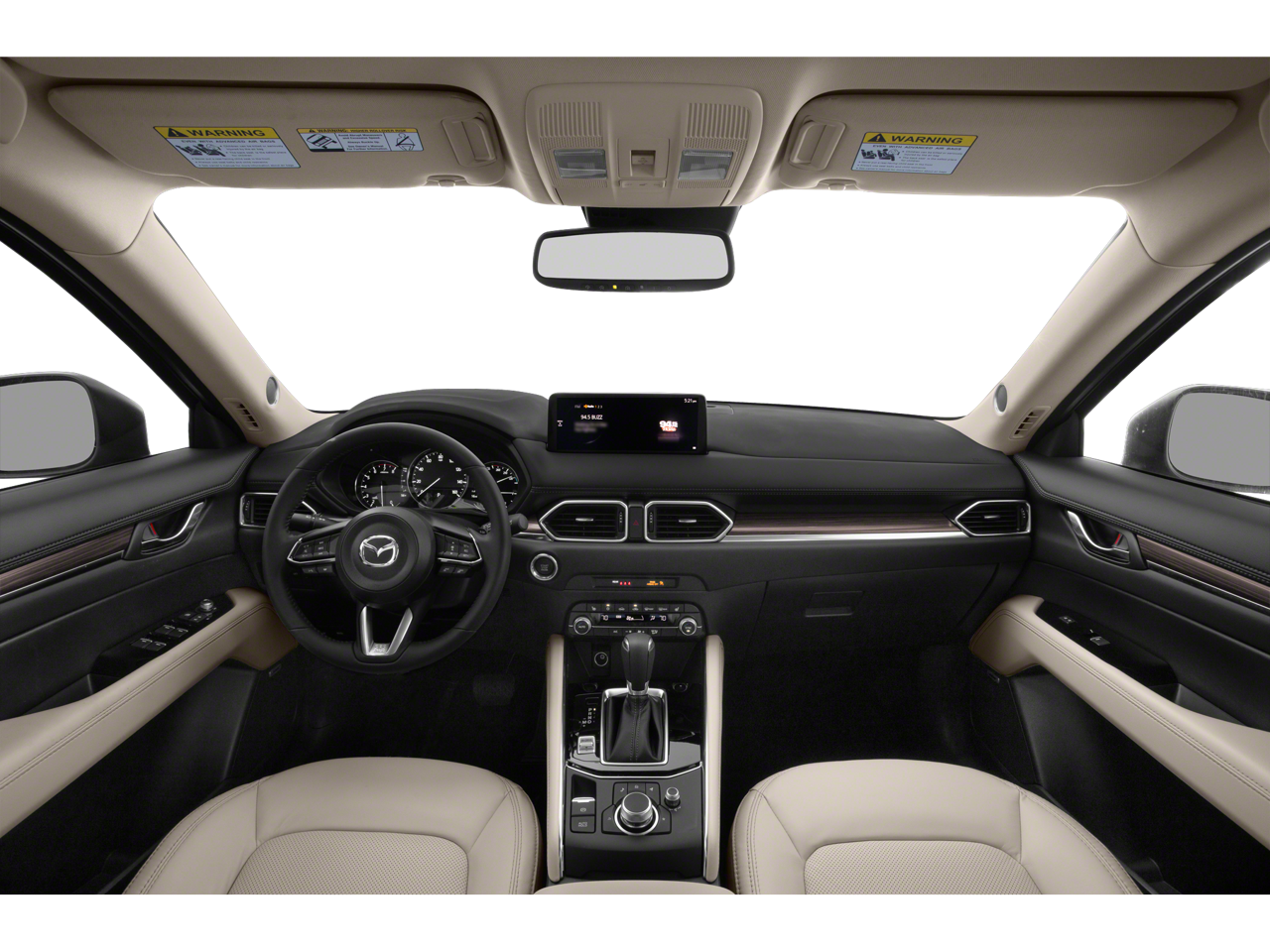 This Mazda CX-5 is well equipped with 4-Wheel Disc Brakes, 4.624 Axle Ratio, 6 Speakers, ABS brakes, Air Conditioning, Alloy wheels, AppLink/Apple CarPlay and Android Auto, Auto High-beam Headlights, Auto-dimming Rear-View mirror, Automatic temperature control, Brake assist, Bumpers: body-color, Delay-off headlights, Driver door bin, Driver vanity mirror, Dual front impact airbags, Dual front side impact airbags, E911 Automatic Emergency Notification, Electronic Stability Control, Emergency communication system: MAZDA CONNECT, Exterior Parking Camera Rear, Four wheel independent suspension, Front anti-roll bar, Front Bucket Seats, Front Center Armrest w/Storage, Front dual zone A/C, Front reading lights, Fully automatic headlights, Garage door transmitter: HomeLink, Heated door mirrors, Heated Front Bucket Seats, Heated front seats, Illuminated entry, Infotainment System Voice Command, Leather Seat Trim, Leather Shift Knob, Low tire pressure warning, Memory seat, Multifunction Commander Control, Occupant sensing airbag, Outside temperature display, Overhead airbag, Overhead console, Pandora, Panic alarm, Passenger door bin, Passenger vanity mirror, Power door mirrors, Power driver seat, Power moonroof, Power passenger seat, Power steering, Power windows, Premium audio system: Bose, Radio Broadcast Data System Program Information, Radio data system, Radio: AM/FM/HD Audio System, Rain sensing wipers, Rear anti-roll bar, Rear reading lights, Rear seat center armrest, Rear window defroster, Rear window wiper, Remote keyless entry, SMS Text Msg Audio Delivery & Reply, Snowflake White Pearl Mica Paint, Speed control, Speed-sensing steering, Split folding rear seat, Spoiler, Steering wheel mounted audio controls, Tachometer, Telescoping steering wheel, Tilt steering wheel, Traction control, Trip computer, Turn signal indicator mirrors, Variably intermittent wipers, and Wheels: 19" x 7J Aluminum Alloy.