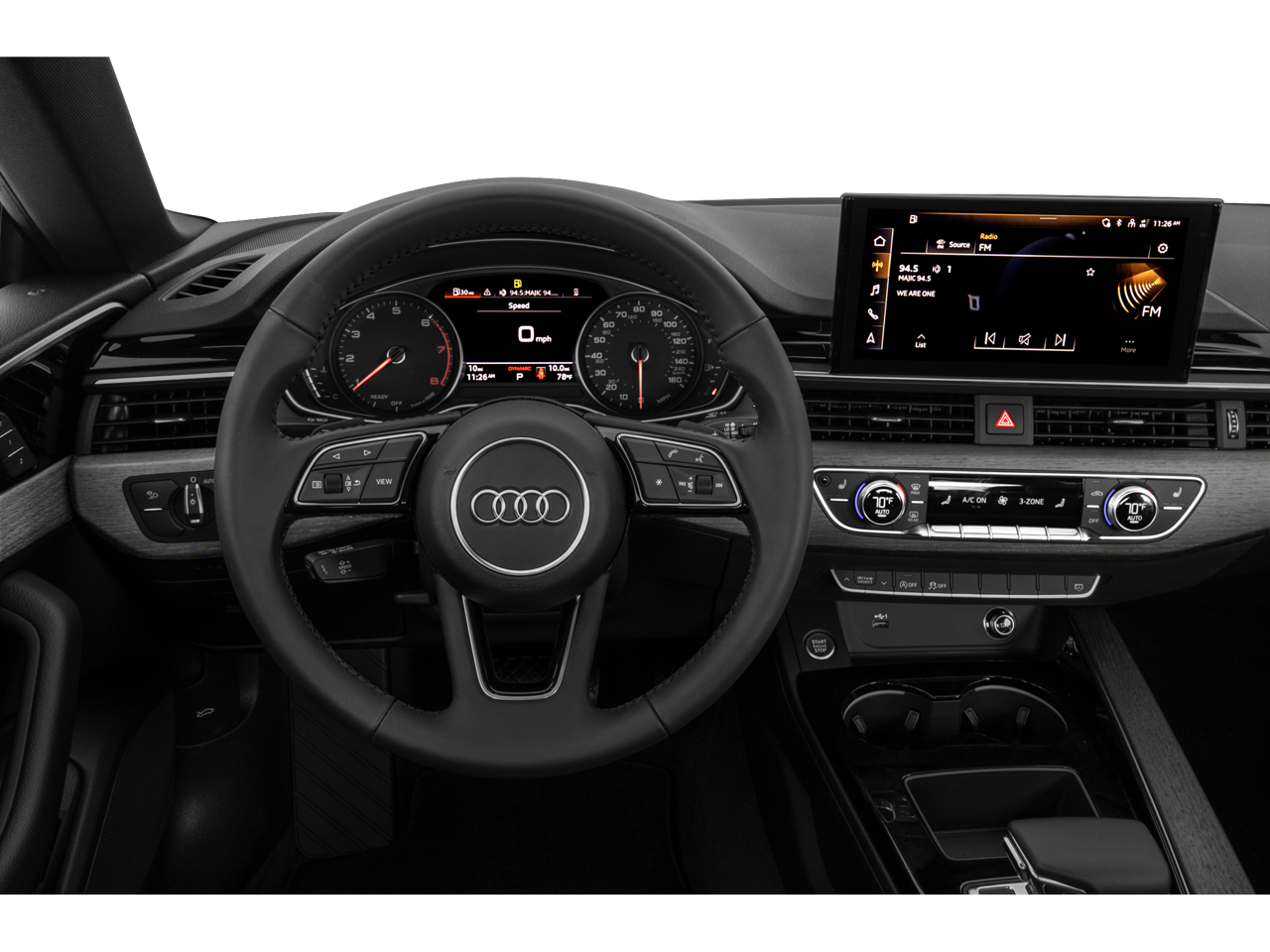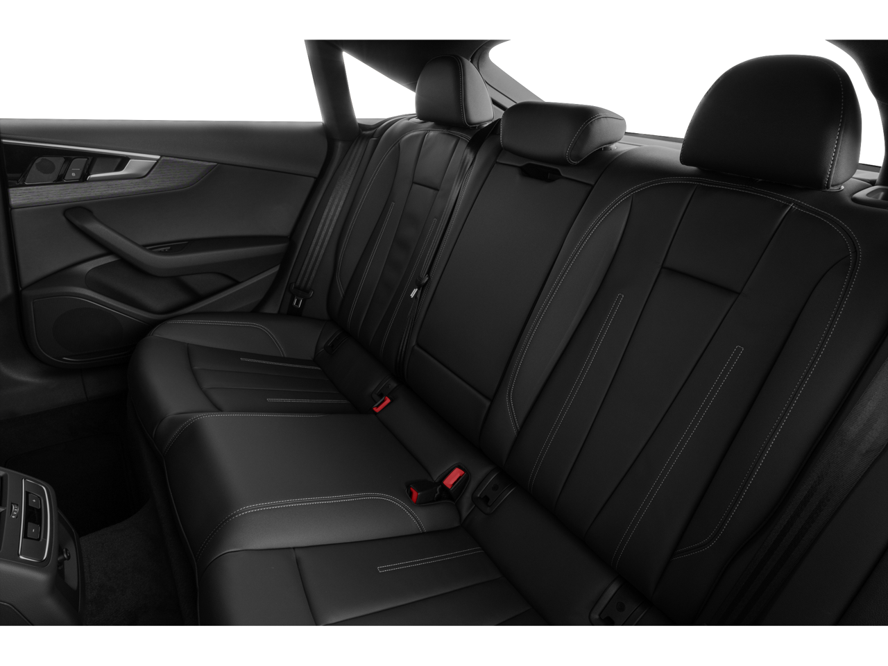 This A5 Sportback is well equipped with 10 Speakers, 4-Wheel Disc Brakes, ABS brakes, Air Conditioning, All-Weather Floor Mats, Alloy wheels, AM/FM radio, Anti-whiplash front head restraints, Auto High-beam Headlights, Auto-dimming Rear-View mirror, Automatic temperature control, Brake assist, Bumpers: body-color, Cargo Mat, Compass, Delay-off headlights, Driver door bin, Driver vanity mirror, Dual front impact airbags, Dual front side impact airbags, Electronic Stability Control, Emergency communication system: Audi connect CARE, Exterior Parking Camera Rear, Four wheel independent suspension, Front anti-roll bar, Front Bucket Seats, Front Center Armrest, Front dual zone A/C, Front fog lights, Front reading lights, Garage door transmitter: HomeLink, Genuine wood console insert, Genuine wood dashboard insert, Genuine wood door panel insert, Heated door mirrors, Heated Front Seats, Heated front seats, Illuminated entry, Knee airbag, Leather Seating Surfaces, Leather Shift Knob, Leather steering wheel, Low tire pressure warning, Occupant sensing airbag, Outside temperature display, Overhead airbag, Overhead console, Panic alarm, Passenger door bin, Passenger vanity mirror, Power adjustable front head restraints, Power door mirrors, Power driver seat, Power Liftgate, Power moonroof, Power passenger seat, Power steering, Power windows, Radio data system, Radio: Audi Sound System, Rain sensing wipers, Rear air conditioning, Rear anti-roll bar, Rear reading lights, Rear seat center armrest, Rear window defroster, Remote keyless entry, Rings Audi Beam, Speed control, Speed-sensing steering, Speed-Sensitive Wipers, Split folding rear seat, Steering wheel mounted audio controls, Tachometer, Telescoping steering wheel, Tilt steering wheel, Traction control, Trip computer, Turn signal indicator mirrors, Variably intermittent wipers, and Wheels: 18" 5-V-Spoke-Y Design.