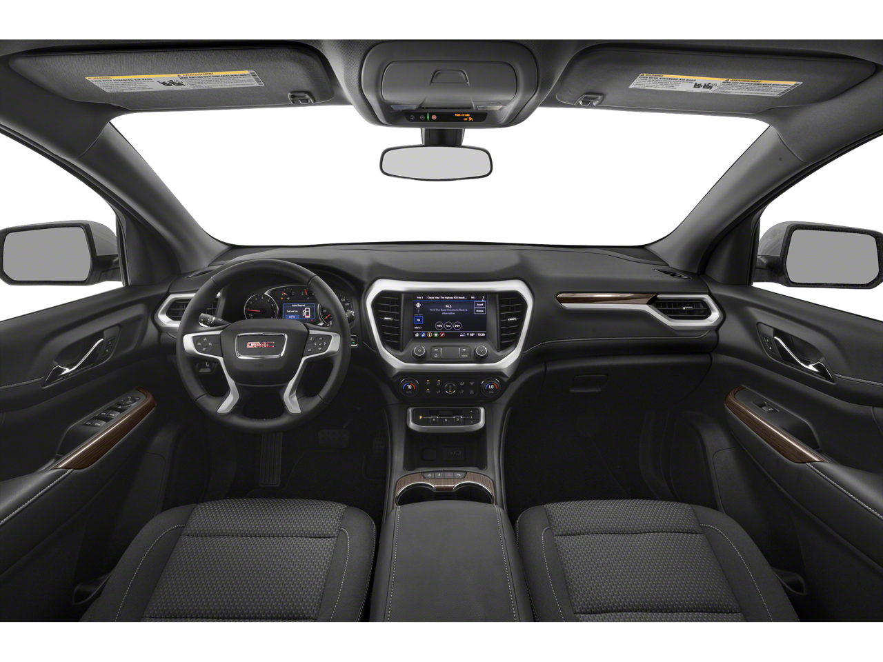 This Acadia is well equipped with Elevation Edition (20" Machined Aluminum Wheels and Gloss Black Roof Rails), Preferred Equipment Group 3SA, AWD, Jet Black Cloth, 3.47 Final Drive Axle Ratio, 3rd row seats: split-bench, 4-Way Manual Driver Seat Adjuster, 4-Way Manual Passenger Seat Adjuster, 4-Wheel Disc Brakes, 6 Speakers, 6-Passenger (2-2-2 Seating Configuration), 6-Speaker Audio System Feature, ABS brakes, Air Conditioning, Alloy wheels, AM/FM radio: SiriusXM, Apple CarPlay/Android Auto, Auto High-beam Headlights, Automatic temperature control, Brake assist, Bumpers: body-color, Compass, Delay-off headlights, Driver door bin, Driver vanity mirror, Dual front impact airbags, Dual front side impact airbags, Electronic Stability Control, Emergency communication system: OnStar and GMC Connected Services capable, Four wheel independent suspension, Front anti-roll bar, Front Bucket Seats, Front Center Armrest, Front dual zone A/C, Front License Plate Bracket, Front reading lights, Fully automatic headlights, Heated door mirrors, Illuminated entry, Knee airbag, Low tire pressure warning, Not Equipped w/Front & Rear Park Assist, Occupant sensing airbag, Outside temperature display, Overhead airbag, Overhead console, Panic alarm, Passenger door bin, Passenger vanity mirror, Power door mirrors, Power steering, Power windows, Premium audio system: GMC Infotainment System, Premium Cloth Seat Trim, Radio data system, Radio: AM/FM w/8" Diagonal Multi-Touch Display, Rear air conditioning, Rear anti-roll bar, Rear reading lights, Rear window defroster, Rear window wiper, Remote keyless entry, Security system, SiriusXM Radio, Speed control, Speed-sensing steering, Spoiler, Steering wheel mounted audio controls, Tachometer, Telescoping steering wheel, Tilt steering wheel, Traction control, Trip computer, Turn signal indicator mirrors, Variably intermittent wipers, Voltmeter, Wheels: 18" Machined Aluminum w/Dark Accents, and Wireless Apple CarPlay/Wireless Android Auto.
