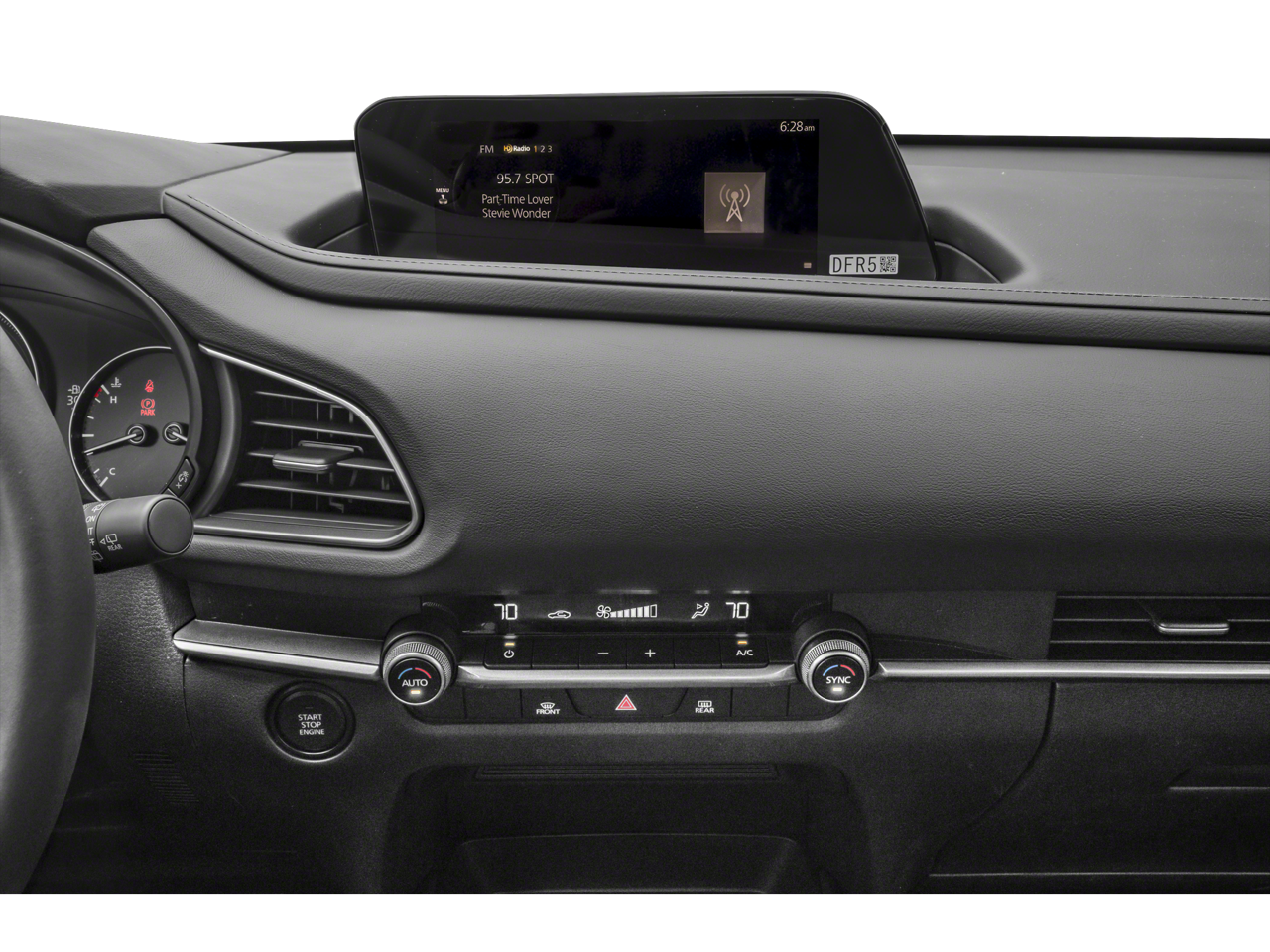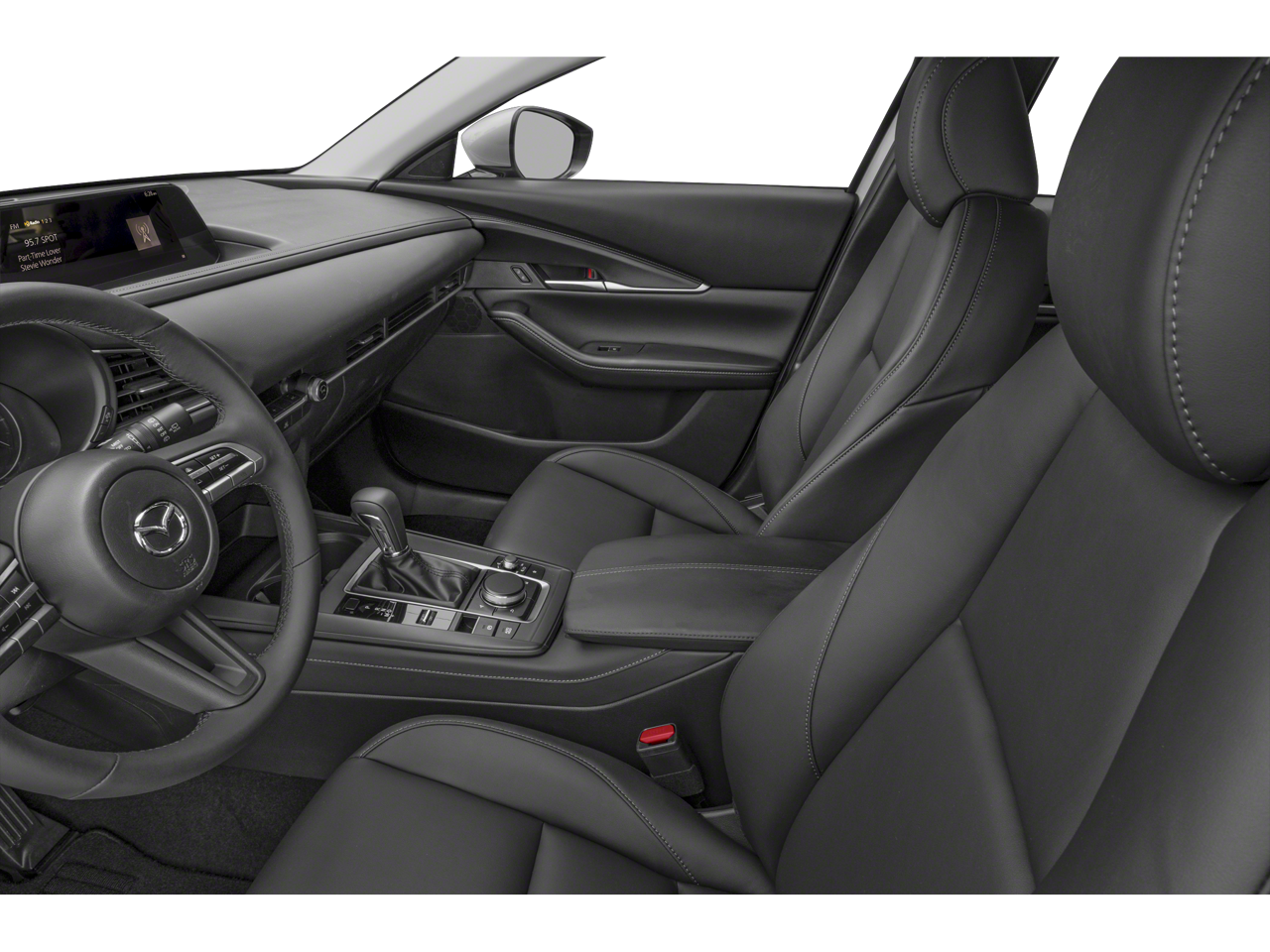 This Mazda CX-30 is well equipped with 4-Wheel Disc Brakes, 4.095 Axle Ratio, 8 Speakers, ABS brakes, Air Conditioning, Alloy wheels, AM/FM radio, AppLink/Apple CarPlay and Android Auto, Auto High-beam Headlights, Automatic temperature control, Brake assist, Bumpers: body-color, Compass, Delay-off headlights, Driver door bin, Driver vanity mirror, Dual front impact airbags, Dual front side impact airbags, Electronic Stability Control, Emergency communication system: Mazda Connected Services (3-year complimentary trial included), Exterior Parking Camera Rear, Front anti-roll bar, Front Bucket Seats, Front Center Armrest, Front dual zone A/C, Front reading lights, Front wheel independent suspension, Fully automatic headlights, Illuminated entry, Knee airbag, Leather Shift Knob, Leather steering wheel, Leatherette Seat Trim, Low tire pressure warning, MAZDA CONNECT Infotainment System, Occupant sensing airbag, Outside temperature display, Overhead airbag, Panic alarm, Passenger door bin, Passenger vanity mirror, Power door mirrors, Power steering, Power windows, Radio data system, Radio: AM/FM/HD Audio System, Rain sensing wipers, Rear seat center armrest, Rear side impact airbag, Rear window defroster, Rear window wiper, Remote keyless entry, Soul Red Crystal Metallic Paint, Speed control, Speed-sensing steering, Split folding rear seat, Spoiler, Steering wheel mounted audio controls, Tachometer, Telescoping steering wheel, Tilt steering wheel, Traction control, Trip computer, Turn signal indicator mirrors, Variably intermittent wipers, and Wheels: 18" x 7J Aluminum Alloy.
