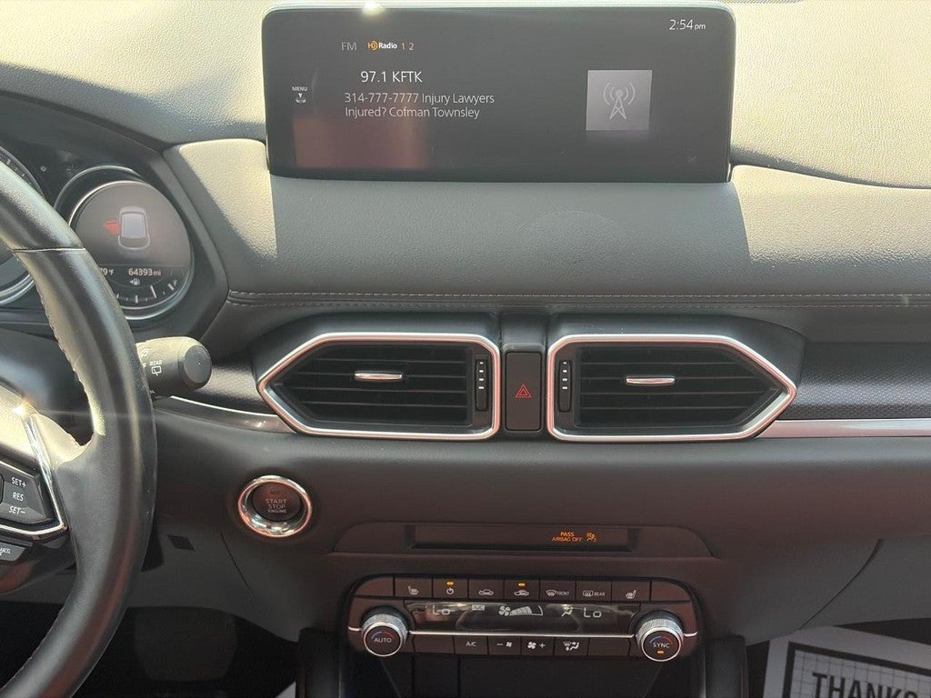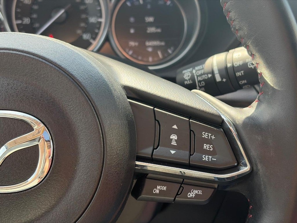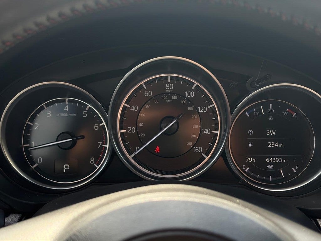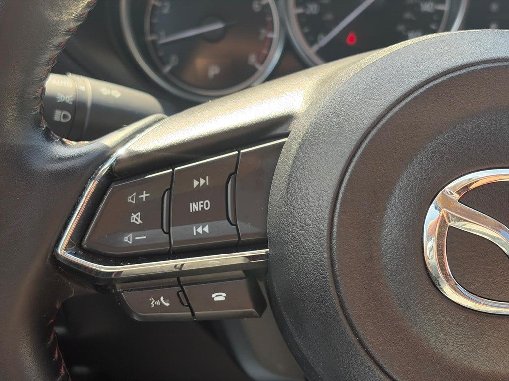 This Mazda CX-5 is well equipped with 10 Speakers, 4-Wheel Disc Brakes, 4.624 Axle Ratio, ABS brakes, Air Conditioning, Alloy wheels, AM/FM radio, AppLink/Apple CarPlay and Android Auto, Auto High-beam Headlights, Auto-dimming Rear-View mirror, Automatic temperature control, Black Lug Nuts & Black Wheel Locks, Brake assist, Bumpers: body-color, Carbon Edition License Plate Frame, Cargo Net, Delay-off headlights, Driver door bin, Driver vanity mirror, Dual front impact airbags, Dual front side impact airbags, E911 Automatic Emergency Notification, Electronic Stability Control, Emergency communication system: MAZDA CONNECT, Exterior Parking Camera Rear, Four wheel independent suspension, Front anti-roll bar, Front Bucket Seats, Front Center Armrest w/Storage, Front dual zone A/C, Front reading lights, Fully automatic headlights, Garage door transmitter: HomeLink, Heated Front Bucket Seats, Heated front seats, Illuminated entry, Infotainment System Voice Command, Leather Seat Trim, Leather Shift Knob, Low tire pressure warning, Memory seat, Multifunction Commander Control, Occupant sensing airbag, Outside temperature display, Overhead airbag, Overhead console, Pandora, Panic alarm, Passenger door bin, Passenger vanity mirror, Power door mirrors, Power driver seat, Power Liftgate, Power moonroof, Power passenger seat, Power steering, Power windows, Radio Broadcast Data System Program Information, Radio data system, Radio: AM/FM/HD Audio System, Rain sensing wipers, Rear anti-roll bar, Rear reading lights, Rear seat center armrest, Rear window defroster, Rear window wiper, Remote keyless entry, Roof Rack Side Rails, SMS Text Msg Audio Delivery & Reply, Speed control, Speed-sensing steering, Split folding rear seat, Spoiler, Steering wheel mounted audio controls, Tachometer, Telescoping steering wheel, Tilt steering wheel, Traction control, Trip computer, Turn signal indicator mirrors, Variably intermittent wipers, and Wheels: 19" x 7J Aluminum Alloy.
