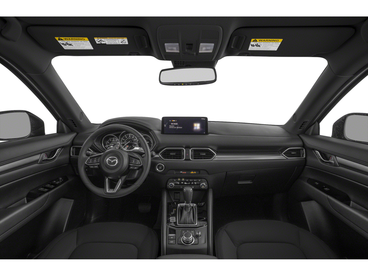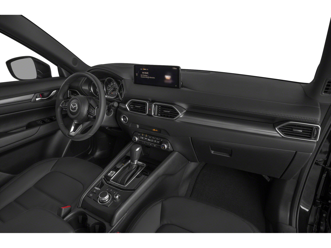 This Mazda CX-5 is well equipped with 4-Wheel Disc Brakes, 4.624 Axle Ratio, ABS brakes, Air Conditioning, Alloy wheels, AM/FM radio, AppLink/Apple CarPlay and Android Auto, Auto High-beam Headlights, Auto-dimming Rear-View mirror, Automatic temperature control, Brake assist, Bumpers: body-color, Cargo Mat, Delay-off headlights, Driver door bin, Driver vanity mirror, Dual front impact airbags, Dual front side impact airbags, E911 Automatic Emergency Notification, Electronic Stability Control, Emergency communication system: MAZDA CONNECT, Exterior Parking Camera Rear, Four wheel independent suspension, Front anti-roll bar, Front Bucket Seats, Front Center Armrest w/Storage, Front dual zone A/C, Front reading lights, Fully automatic headlights, Garage door transmitter: HomeLink, Heated Front Bucket Seats, Heated front seats, Illuminated entry, Infotainment System Voice Command, Leather Seat Trim, Leather Shift Knob, Low tire pressure warning, Memory seat, Multifunction Commander Control, Occupant sensing airbag, Outside temperature display, Overhead airbag, Overhead console, Pandora, Panic alarm, Passenger door bin, Passenger vanity mirror, Power door mirrors, Power driver seat, Power Liftgate, Power moonroof, Power passenger seat, Power steering, Power windows, Radio Broadcast Data System Program Information, Radio data system, Radio: AM/FM/HD Audio System, Rain sensing wipers, Rear anti-roll bar, Rear Bumper Guard, Rear reading lights, Rear seat center armrest, Rear window defroster, Rear window wiper, Remote keyless entry, SMS Text Msg Audio Delivery & Reply, Speed control, Speed-sensing steering, Split folding rear seat, Spoiler, Steering wheel mounted audio controls, Tachometer, Telescoping steering wheel, Tilt steering wheel, Traction control, Trip computer, Turn signal indicator mirrors, and Variably intermittent wipers.