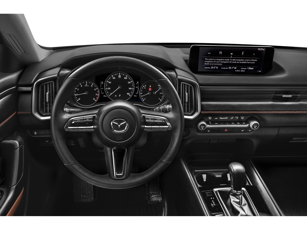 This Mazda CX-50 is well equipped with Cargo Package (Cargo Blocks and Cargo Net), Mazda Certified Pre-Owned Certified, 3.841 Axle Ratio, 4-Wheel Disc Brakes, 8 Speakers, ABS brakes, Air Conditioning, Alloy wheels, AM/FM radio, AppLink/Apple CarPlay and Android Auto, Auto High-beam Headlights, Auto-dimming Rear-View mirror, Automatic temperature control, Brake assist, Bumpers: body-color, Compass, Delay-off headlights, Driver door bin, Driver vanity mirror, Dual front impact airbags, Dual front side impact airbags, Electronic Stability Control, Emergency communication system: MAZDA CONNECT, Exterior Parking Camera Rear, Front anti-roll bar, Front Bucket Seats, Front Center Armrest w/Storage, Front dual zone A/C, Front reading lights, Front wheel independent suspension, Fully automatic headlights, Garage door transmitter: HomeLink, Heated door mirrors, Heated Front Bucket Seats, Heated front seats, Illuminated entry, Knee airbag, Leather Seat Trim, Leather Shift Knob, Leather steering wheel, Low tire pressure warning, Memory seat, Occupant sensing airbag, Outside temperature display, Overhead airbag, Overhead console, Panic alarm, Passenger door bin, Passenger vanity mirror, Power door mirrors, Power driver seat, Power Liftgate, Power moonroof, Power passenger seat, Power steering, Power windows, Radio data system, Radio: AM/FM/HD Audio System, Rain sensing wipers, Rear seat center armrest, Rear window defroster, Rear window wiper, Remote keyless entry, Speed control, Speed-sensing steering, Split folding rear seat, Spoiler, Steering wheel mounted audio controls, Tachometer, Telescoping steering wheel, Tilt steering wheel, Traction control, Trip computer, Turn signal indicator mirrors, Variably intermittent wipers, Wheels: 18" x 8J Aluminum Alloy, and Zircon Sand Metallic Paint Charge.