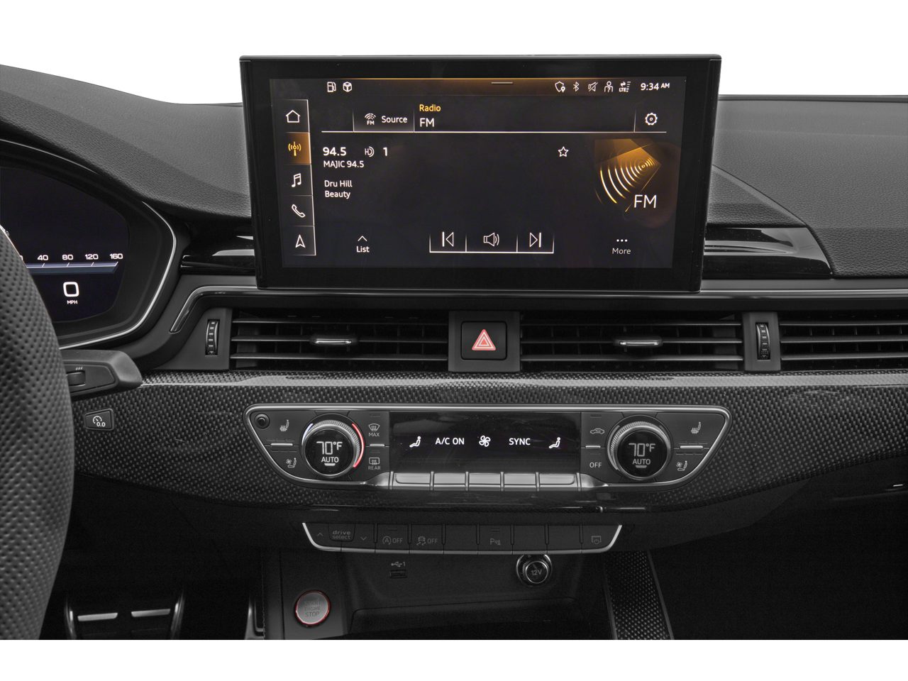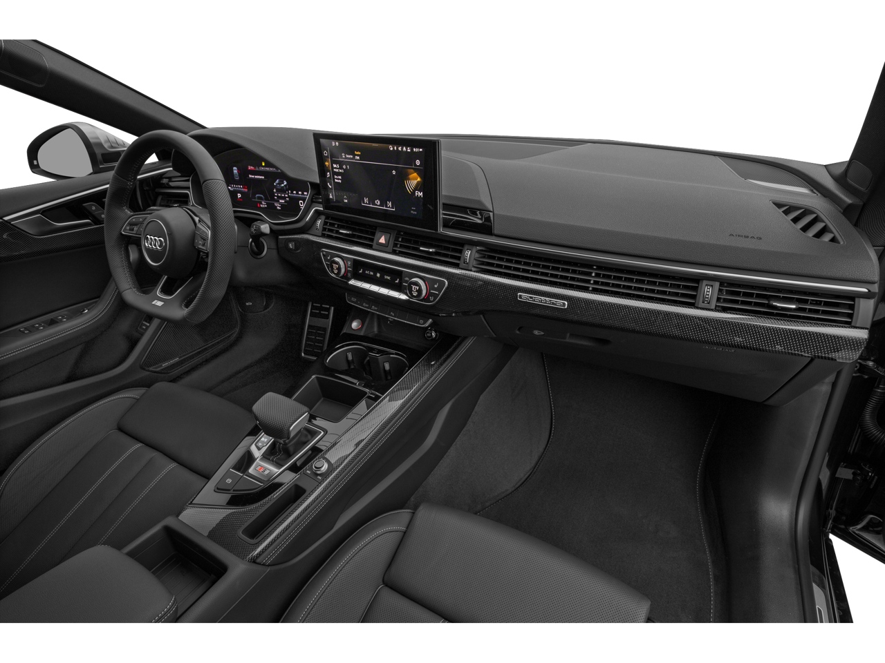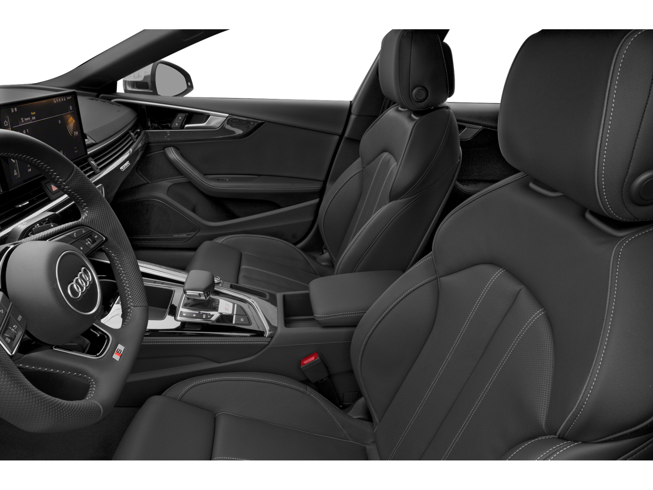 This S5 Sportback is well equipped with 10 Speakers, 4-Wheel Disc Brakes, ABS brakes, Air Conditioning, Alloy wheels, AM/FM radio, Auto High-beam Headlights, Auto-dimming Rear-View mirror, Automatic temperature control, Brake assist, Bumpers: body-color, Compass, Delay-off headlights, Driver door bin, Driver vanity mirror, Dual front impact airbags, Dual front side impact airbags, Electronic Stability Control, Emergency communication system: Audi connect CARE, Exterior Parking Camera Rear, Four wheel independent suspension, Front anti-roll bar, Front Bucket Seats, Front Center Armrest, Front dual zone A/C, Front fog lights, Front reading lights, Garage door transmitter: HomeLink, Heated door mirrors, Heated Front S Sport Seats, Heated front seats, Illuminated entry, Knee airbag, Leather Shift Knob, Leather steering wheel, Leather/Dinamica Seating Surfaces, Low tire pressure warning, Occupant sensing airbag, Outside temperature display, Overhead airbag, Overhead console, Panic alarm, Passenger door bin, Passenger vanity mirror, Power door mirrors, Power driver seat, Power Liftgate, Power moonroof, Power passenger seat, Power steering, Power windows, Radio data system, Radio: Audi Sound System, Rain sensing wipers, Rear air conditioning, Rear anti-roll bar, Rear reading lights, Rear seat center armrest, Rear window defroster, Remote keyless entry, Speed control, Speed-sensing steering, Speed-Sensitive Wipers, Split folding rear seat, Spoiler, Steering wheel mounted audio controls, Tachometer, Telescoping steering wheel, Tilt steering wheel, Traction control, Trip computer, Turn signal indicator mirrors, Variably intermittent wipers, and Wheels: 19" 5-Double-Arm Design Bi-Color Finish.