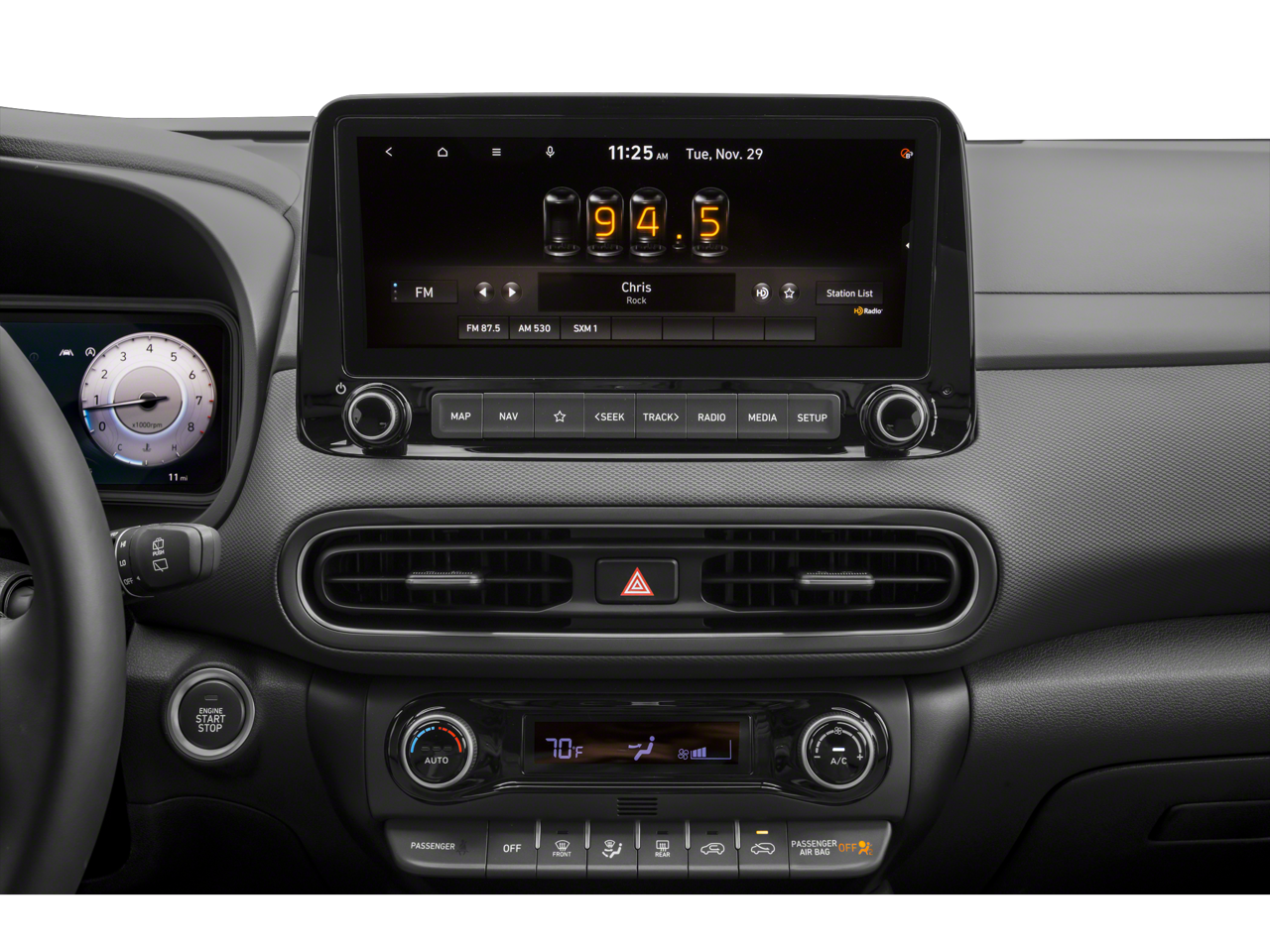 - Radio: harman/kardon Premium Audio System -inc: AM/FM, HD radio, SiriusXM, Clari-Fi music restoration technology, 8 speakers, 10.25" color touchscreen, onboard navigation and traffic flow and incident data free via HD radio (HERE), Android Auto, Apple CarPlay, supports Siri and Google Now, 1 amp USB data/charge jack, Bluetooth®, Blue Link connected car system and Over-the-Air (OTA) map updates