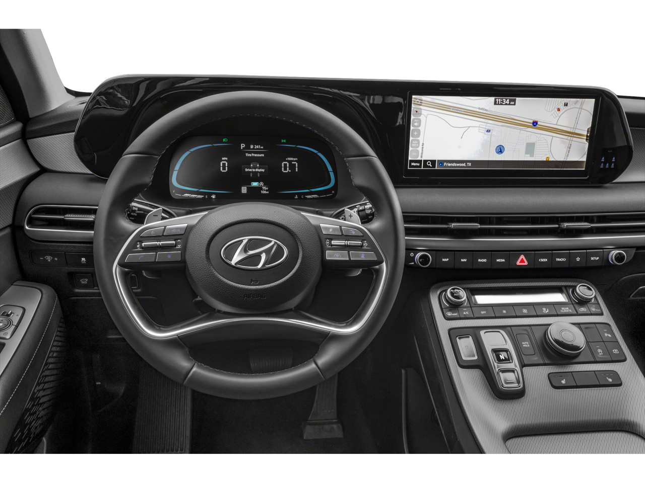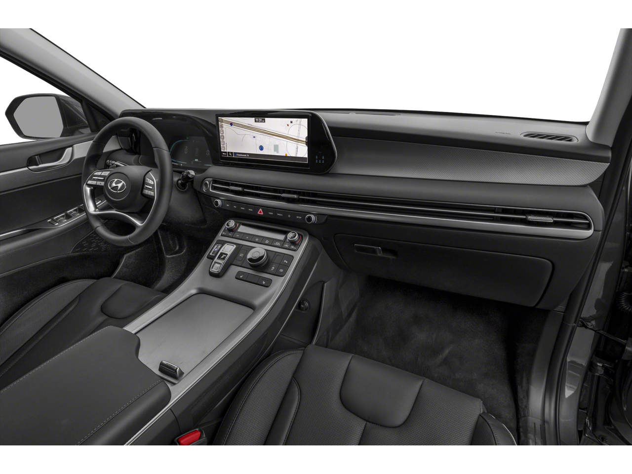 This Palisade is well equipped with Cargo Package (Cargo Blocks, Cargo Net, and Cargo Tray), Option Group 01, 3.648 Axle Ratio, 3rd row seats: split-bench, 4-Wheel Disc Brakes, 6 Speakers, ABS brakes, Air Conditioning, Alloy wheels, AM/FM radio: SiriusXM, Apple CarPlay & Android Auto, Auto High-beam Headlights, Auto-dimming door mirrors, Auto-dimming Rear-View mirror, Auto-leveling suspension, Automatic temperature control, Brake assist, Bumpers: body-color, Carpeted Floor Mats, Delay-off headlights, Driver door bin, Driver vanity mirror, Dual front impact airbags, Dual front side impact airbags, Electronic Stability Control, Emergency communication system: Blue Link Connected Car Service (3-year complimentary subscription), Exterior Parking Camera Rear, First Aid Kit, Four wheel independent suspension, Front anti-roll bar, Front Bucket Seats, Front Center Armrest, Front dual zone A/C, Front reading lights, Fully automatic headlights, Garage door transmitter: HomeLink, H-Tex Leatherette Seat Trim, Heated door mirrors, Heated Front Bucket Seats, Heated front seats, Illuminated entry, Knee airbag, Low tire pressure warning, Navigation System, Occupant sensing airbag, Outside temperature display, Overhead airbag, Overhead console, Panic alarm, Passenger door bin, Passenger vanity mirror, Power door mirrors, Power driver seat, Power Liftgate, Power moonroof, Power passenger seat, Power steering, Power windows, Radio data system, Radio: AM/FM/MP3 Audio System, Rear air conditioning, Rear anti-roll bar, Rear audio controls, Rear Bumper Applique, Rear reading lights, Rear side impact airbag, Rear window defroster, Rear window wiper, Reclining 3rd row seat, Remote keyless entry, Security system, Speed control, Speed-sensing steering, Splash Trim, Split folding rear seat, Spoiler, Steering wheel mounted audio controls, Tachometer, Telescoping steering wheel, Tilt steering wheel, Traction control, Trip computer, Turn signal indicator mirrors, Variably intermittent wipers, and Wheels: 20" x 7.5J Dark Alloy w/Rugged Styling.