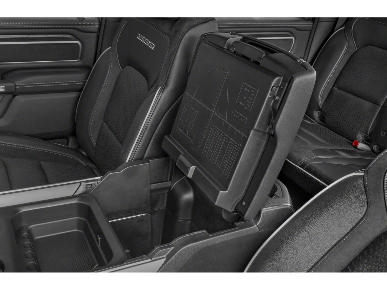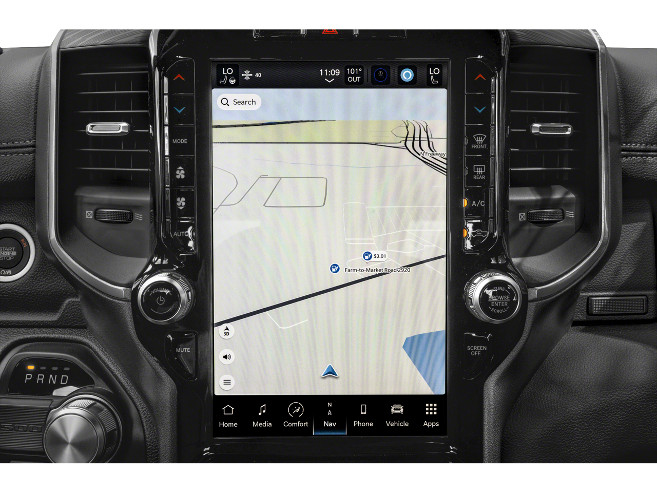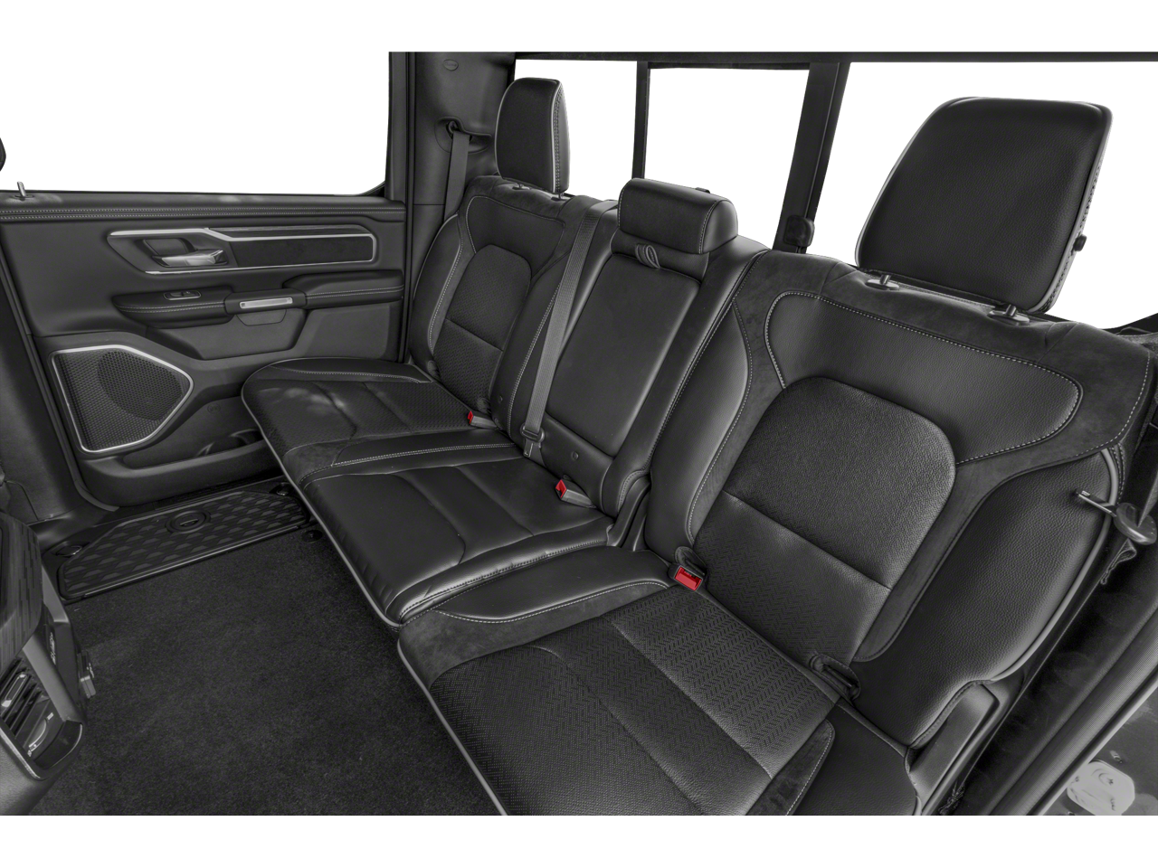 This 1500 is well equipped with Bed Utility Group (MOPAR 4 Adjustable Cargo Tie-Down Hooks, MOPAR Spray In Bedliner, and Pick-Up Box Lighting), Laramie Level 1 Equipment Group (12" Touchscreen Display, 2nd Row In Floor Storage Bins, 4G LTE Wi-Fi Hot Spot, Apple CarPlay, Auto High Beam Headlamp Control, Blind Spot & Cross Path Detection, Connected Travel & Traffic Services, Connectivity - US/Canada, Disassociated Touchscreen Display, Electric Shift-On-Demand Transfer Case, Foam Bottle Insert (Door Trim Panel), For Details, Visit DriveUconnect.com, For More Info, Call 800-643-2112, Front Door Accent Lighting, Front LED Fog Lamps, Global Telematics Box Module (TBM), Google Android Auto, GPS Antenna Input, GPS Navigation, HD Radio, Integrated Center Stack Radio, Integrated Voice Command w/Bluetooth®, LED Reflector Headlamps, Radio: Uconnect 5 Nav w/12.0" Display, Rain Sensitive Windshield Wipers, Rear Door Accent Lighting, Rear Power Sliding Window, Rear Window Defroster, Remote Tailgate Release, SiriusXM Radio Service, SiriusXM w/360L, and USB Host Flip), Quick Order Package 27H Laramie, #1 Seat Foam Cushion, 10 Speakers, 3 Rear Seat Head Restraints, 3.21 Rear Axle Ratio, 4 Way Front Headrests, 4-Wheel Disc Brakes, 48V Belt Starter Generator, ABS brakes, Adjustable pedals, Air Conditioning, Alloy wheels, AM/FM radio: SiriusXM with 360L, Apple CarPlay/Android Auto, Audio memory, Auto-dimming door mirrors, Auto-Dimming Exterior Driver Mirror, Auto-dimming Rear-View mirror, Automatic temperature control, Brake assist, Bumpers: chrome, Chrome Exterior Mirrors, Class IV Receiver Hitch, Compass, Convex Wide-Angle Exterior Mirror Insert, Delay-off headlights, Dome Dual LED Reading Lamp, Driver door bin, Driver Seat Memory, Driver vanity mirror, Dual front impact airbags, Dual front side impact airbags, Dual-Pane Panoramic Sunroof, Electronic Stability Control, Exterior Mirrors Courtesy Lamps, Exterior Mirrors w/Heating Element, Exterior Mirrors w/Memory, Exterior Mirrors w/Supplemental Signals, Front anti-roll bar, Front Center Armrest w/Storage, Front dual zone A/C, Front fog lights, Front License Plate Bracket, Front reading lights, Front Seat Back Map Pockets, Front wheel independent suspension, Fully automatic headlights, Garage door transmitter, Heated door mirrors, Heated Front Seats, Heated front seats, Heated Steering Wheel, Heated steering wheel, Illuminated entry, Leather steering wheel, Leather Trim 40/20/40 Bench Seat, LED Dome/Reading Lamp, Low tire pressure warning, Memory seat, MOPAR Front & Rear Rubber Floor Mats, Navigation System, Occupant sensing airbag, Outside temperature display, Overhead airbag, Overhead console, Panic alarm, ParkSense Front/Rear Park Assist w/Stop (DISC), ParkView Rear Back-Up Camera, Passenger door bin, Passenger vanity mirror, Pedal memory, Power 2-Way Driver Lumbar Adjust, Power 2-Way Passenger Lumbar Adjust, Power 8-Way Driver & Passenger Seats, Power door mirrors, Power driver seat, Power passenger seat, Power steering, Power windows, Power-Folding Mirrors, Radio data system, Radio: Uconnect 5 Nav w/8.4" Display, RAM Grille Badge - Chrome, Rear 60/40 Folding Seat, Rear anti-roll bar, Rear seat center armrest, Rear step bumper, Rear Wheelhouse Liners, Remote keyless entry, Security system, Speed control, Split folding rear seat, Steering wheel mounted audio controls, Tachometer, Telescoping steering wheel, Tilt steering wheel, Traction control, Trip computer, Turn signal indicator mirrors, Variably intermittent wipers, Ventilated Front Seats, Ventilated front seats, Voltmeter, Wheel to Wheel Side Steps, Wheels: 18" x 8" Aluminum Base Painted, and Wheels: 20" x 9" Premium Paint/Polished.