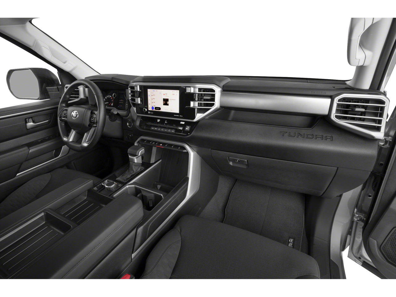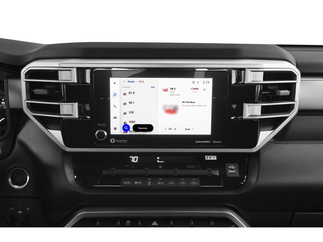 This Tundra is well equipped with SR5 Convenience Package (32 Gallon Fuel Tank, Blind Spot Monitor w/Lane Change Assist, and Parking Support Alert/Brake), TRD Off-Road Package (Bedside TRD Off Road Decal, Black Grille w/Chrome Surround, Front & Rear Mud Guards, Front Spoiler Delete, and TRD Off-Road Suspension w/Bilstein Shocks), 4WD, Black Cloth, 18" Alloy Wheels, 3.31 Axle Ratio, 4-Way Adjustable Front Bucket Seats, 4-Wheel Disc Brakes, 9 Speakers, ABS brakes, Air Conditioning, All Weather Floor Liners (TMS), Alloy wheels, AM/FM radio: SiriusXM, Apple CarPlay/Android Auto, Auto High-beam Headlights, Automatic temperature control, Brake assist, Bumpers: body-color, Delay-off headlights, Driver door bin, Driver vanity mirror, Dual front impact airbags, Dual front side impact airbags, Electronic Stability Control, Emergency communication system: Safety Connect (10-year trial), Exterior Parking Camera Rear, Fabric Seat Trim (FB), Front anti-roll bar, Front Bucket Seats, Front Center Armrest, Front fog lights, Front reading lights, Front wheel independent suspension, Fully automatic headlights, Heated door mirrors, Heated Leather Steering Wheel, Illuminated entry, Knee airbag, Low tire pressure warning, Occupant sensing airbag, Offroad Front Skid Plate, Outside temperature display, Overhead airbag, Overhead console, Panic alarm, Passenger door bin, Passenger vanity mirror, Power door mirrors, Power steering, Power windows, Radio data system, Radio: Audio Multimedia System, Rear reading lights, Rear step bumper, Rear window defroster, Remote keyless entry, Safety Connect, Security system, Speed control, Speed-sensing steering, Split folding rear seat, SR5 Painted Mirror, Stainless Steel Door Edge Guard (TMS), Steering wheel mounted audio controls, Tachometer, Telescoping steering wheel, Tilt steering wheel, Traction control, Trip computer, Variably intermittent wipers, Voltmeter, and Wheel Locks (TMS).