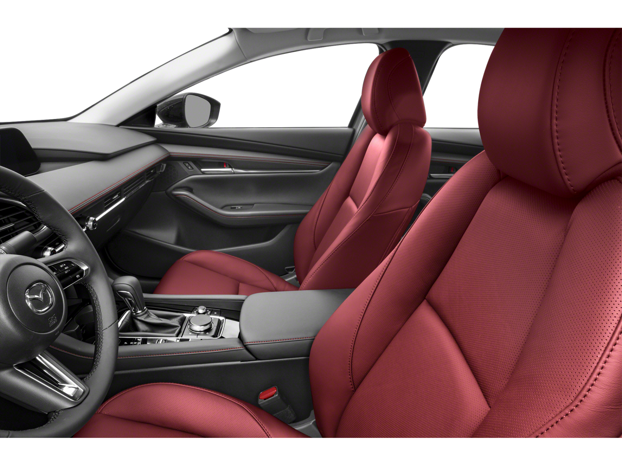 This Mazda Mazda3 is well equipped with 4-Wheel Disc Brakes, 8 Speakers, ABS brakes, Air Conditioning, Alloy wheels, AM/FM radio, Auto High-beam Headlights, Automatic temperature control, Black Lug Nuts & Black Wheel Locks, Brake assist, Bumpers: body-color, Compass, Delay-off headlights, Driver door bin, Driver vanity mirror, Dual front impact airbags, Dual front side impact airbags, Electronic Stability Control, Emergency communication system: Mazda Connected Services (3-year complimentary trial included), Exterior Parking Camera Rear, Front anti-roll bar, Front Bucket Seats, Front Center Armrest, Front dual zone A/C, Front Illuminated Door Sill Trim Plates, Front reading lights, Front wheel independent suspension, Fully automatic headlights, Heated door mirrors, Heated front seats, Heated Front Sport Bucket Seats, Illuminated entry, Knee airbag, Leather Seat Trim, Leather Shift Knob, Leather steering wheel, Low tire pressure warning, MAZDA CONNECT Infotainment System, Memory seat, Occupant sensing airbag, Outside temperature display, Overhead airbag, Overhead console, Panic alarm, Passenger door bin, Passenger vanity mirror, Power door mirrors, Power driver seat, Power moonroof, Power steering, Power windows, Radio data system, Radio: AM/FM/HD Audio System, Rain sensing wipers, Rear seat center armrest, Rear side impact airbag, Rear window defroster, Remote keyless entry, Speed control, Speed-sensing steering, Split folding rear seat, Steering wheel mounted audio controls, Tachometer, Telescoping steering wheel, Tilt steering wheel, Traction control, Trip computer, Turn signal indicator mirrors, Variably intermittent wipers, and Wheels: 18" x 7J Aluminum Alloy.