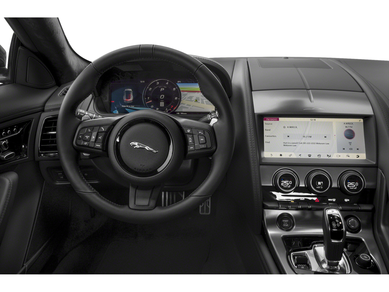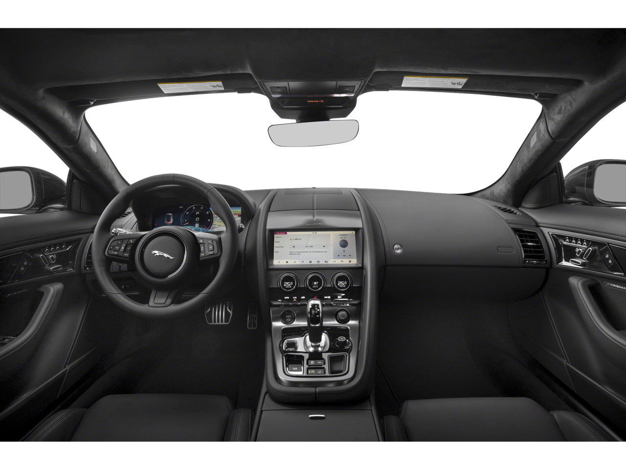 This F-TYPE is well equipped with 10 Speakers, 4-Wheel Disc Brakes, ABS brakes, Adaptive suspension, Air Conditioning, Alloy wheels, AM/FM radio: SiriusXM, Apple CarPlay/Android Auto, Auto High-beam Headlights, Auto tilt-away steering wheel, Auto-dimming door mirrors, Auto-dimming Rear-View mirror, Automatic temperature control, Brake assist, Bumpers: body-color, Delay-off headlights, Driver door bin, Driver vanity mirror, Dual front impact airbags, Dual front side impact airbags, Electronic Stability Control, Emergency communication system: Remote SOS Emergency Call, Exterior Parking Camera Rear, Four wheel independent suspension, Front anti-roll bar, Front Bucket Seats, Front Center Armrest, Front dual zone A/C, Front reading lights, Fully automatic headlights, Garage door transmitter: HomeLink, Grained Leather & Suedecloth Seating Surfaces, Heated door mirrors, Heated front seats, Heated steering wheel, Illuminated entry, Leather Shift Knob, Low tire pressure warning, Memory seat, Navigation System, Occupant sensing airbag, Outside temperature display, Overhead airbag, Overhead console, Panic alarm, Passenger door bin, Passenger vanity mirror, Power door mirrors, Power driver seat, Power Liftgate, Power passenger seat, Power steering, Power windows, Radio data system, Radio: Meridian 380W Audio System, Rain sensing wipers, Rear anti-roll bar, Rear fog lights, Rear window defroster, Remote keyless entry, Security system, Speed control, Speed-sensing steering, Spoiler, Sport 12-Way Electric & Heated Front Seats, Steering wheel memory, Steering wheel mounted audio controls, Tachometer, Telescoping steering wheel, Tilt steering wheel, Traction control, Trip computer, Turn signal indicator mirrors, Variably intermittent wipers, and Wheels: 20" Style 5060 5 Spoke Gloss Sparkle Silver.