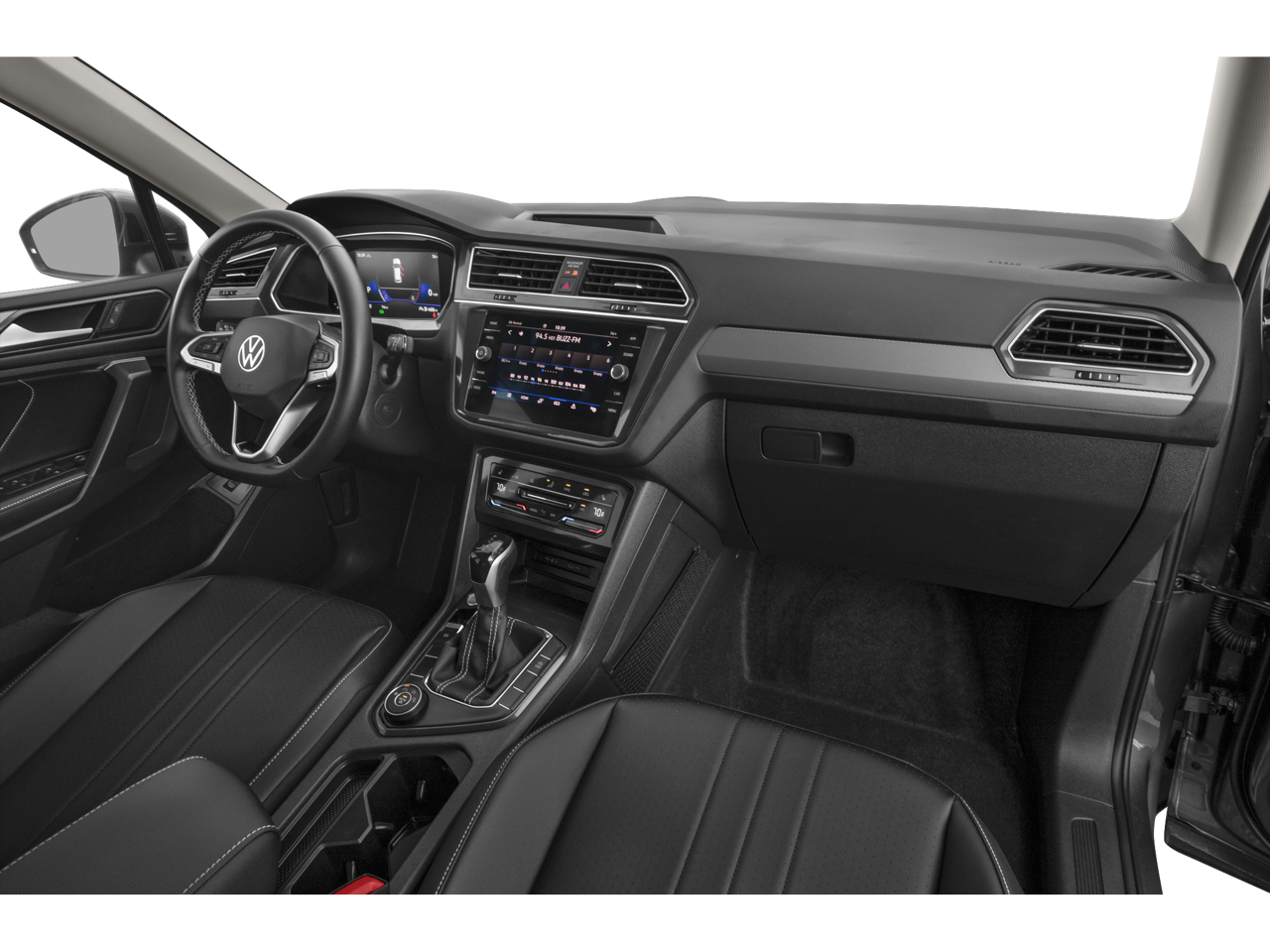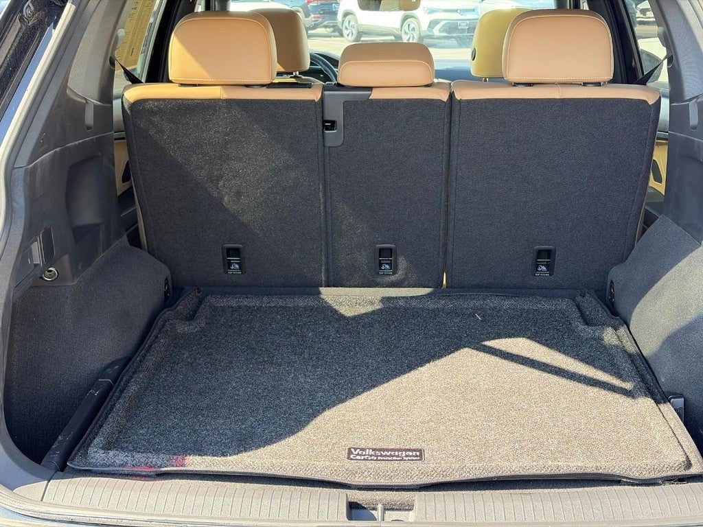 This Tiguan is well equipped with MDO Package, Two-Row (2-Row Rubber Monster Mats Kit (Set of 4), Heavy Duty Trunk Liner w/VW CarGo Blocks, and Luggage Net for Cargo Area), Panoramic Sunroof Package, AWD, 3.33 Axle Ratio, 4-Wheel Disc Brakes, 4-Wheel Independent Suspension, 6 Speakers, ABS brakes, Air Conditioning, Alloy wheels, AM/FM radio: SiriusXM with 360L, Auto-dimming Rear-View mirror, Auto-Dimming Rearview Mirror w/HomeLink Connect, Automatic temperature control, Brake assist, Bumperdillo Rear Bumper Chrome Protection Plate, Bumpers: body-color, Compass, Delay-off headlights, Driver door bin, Driver vanity mirror, Dual front impact airbags, Dual front side impact airbags, Electronic Stability Control, Emergency communication system: VW Car-Net Safe & Secure 5-year, Exterior Parking Camera Rear, Four wheel independent suspension, Front anti-roll bar, Front Bucket Seats, Front Center Armrest, Front dual zone A/C, Front reading lights, Fully automatic headlights, Heated door mirrors, Heated Front Seats, Heated front seats, Illuminated entry, Leather Shift Knob, Low tire pressure warning, Occupant sensing airbag, Outside temperature display, Overhead airbag, Overhead console, Panic alarm, Passenger door bin, Passenger vanity mirror, Perforated V-Tex Leatherette Seating Surfaces, Power door mirrors, Power driver seat, Power Liftgate, Power steering, Power windows, Radio data system, Radio: MIB3 Composition Media AM/FM/HD, Rain sensing wipers, Rear anti-roll bar, Rear reading lights, Rear seat center armrest, Rear window defroster, Rear window wiper, Remote keyless entry, Security system, Speed control, Speed-sensing steering, Split folding rear seat, Spoiler, Steering wheel mounted audio controls, Tachometer, Telescoping steering wheel, Tilt steering wheel, Traction control, Trip computer, Turn signal indicator mirrors, Variably intermittent wipers,