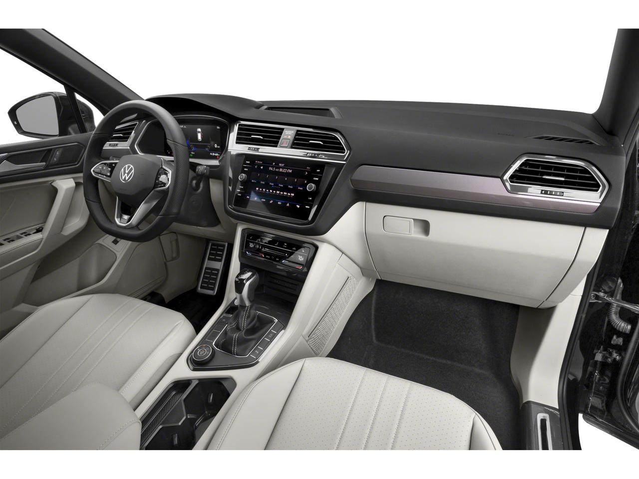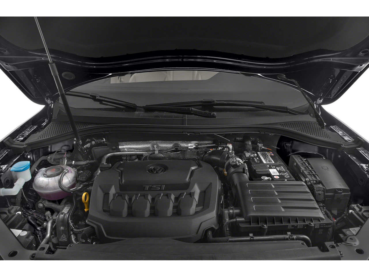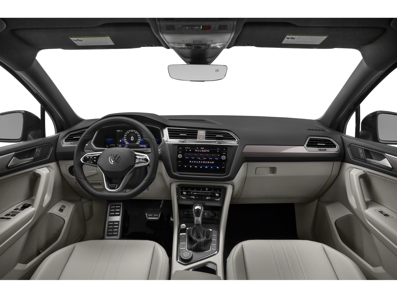 This Tiguan is well equipped with AWD, 3.33 Axle Ratio, 4-Wheel Disc Brakes, 4-Wheel Independent Suspension, 6 Speakers, ABS brakes, Air Conditioning, Alloy wheels, AM/FM radio: SiriusXM with 360L, Auto-dimming Rear-View mirror, Automatic temperature control, Brake assist, Bumpers: body-color, Compass, Delay-off headlights, Driver door bin, Driver vanity mirror, Dual front impact airbags, Dual front side impact airbags, Electronic Stability Control, Emergency communication system: VW Car-Net Safe & Secure 5-year, Exterior Parking Camera Rear, Four wheel independent suspension, Front anti-roll bar, Front Bucket Seats, Front Center Armrest, Front dual zone A/C, Front reading lights, Fully automatic headlights, Heated door mirrors, Heated Front Seats, Heated front seats, Illuminated entry, Leather Shift Knob, Leather steering wheel, Low tire pressure warning, Occupant sensing airbag, Outside temperature display, Overhead airbag, Overhead console, Panic alarm, Passenger door bin, Passenger vanity mirror, Perforated V-Tex Leatherette Seating Surfaces, Power door mirrors, Power driver seat, Power Liftgate, Power moonroof, Power steering, Power windows, Radio data system, Radio: MIB3 Composition Media AM/FM/HD, Rain sensing wipers, Rear anti-roll bar, Rear reading lights, Rear seat center armrest, Rear window defroster, Rear window wiper, Remote keyless entry, Security system, Speed control, Speed-sensing steering, Split folding rear seat, Spoiler, Sport steering wheel, Steering wheel mounted audio controls, Tachometer, Telescoping steering wheel, Tilt steering wheel, Traction control, Trip computer, Turn signal indicator mirrors, Variably intermittent wipers, and Wheels: 19" Black Painted Twin 5-Spoke Alloy.