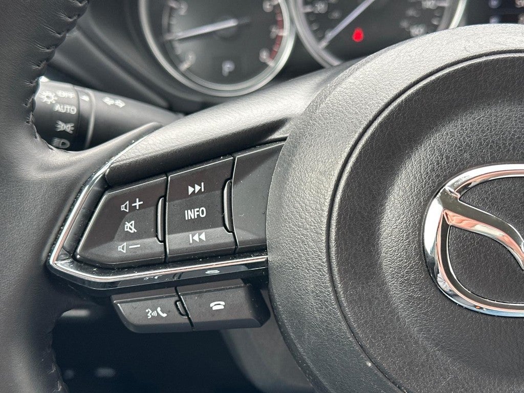 This Mazda CX-5 is well equipped with Mazda Certified Pre-Owned Certified, 4-Wheel Disc Brakes, 6 Speakers, ABS brakes, Air Conditioning, Alloy wheels, AM/FM radio, AppLink/Apple CarPlay and Android Auto, Auto High-beam Headlights, Automatic temperature control, Brake assist, Bumpers: body-color, Delay-off headlights, Driver door bin, Driver vanity mirror, Dual front impact airbags, Dual front side impact airbags, E911 Automatic Emergency Notification, Electronic Stability Control, Emergency communication system: MAZDA CONNECT, Exterior Parking Camera Rear, Four wheel independent suspension, Front anti-roll bar, Front Bucket Seats, Front Center Armrest w/Storage, Front dual zone A/C, Front reading lights, Fully automatic headlights, Heated Front Bucket Seats, Heated front seats, Illuminated entry, Infotainment System Voice Command, Leather Shift Knob, Leather steering wheel, Leatherette Seat Trim, Low tire pressure warning, Multifunction Commander Control, Occupant sensing airbag, Outside temperature display, Overhead airbag, Overhead console, Pandora, Panic alarm, Passenger door bin, Passenger vanity mirror, Power door mirrors, Power driver seat, Power steering, Power windows, Radio Broadcast Data System Program Information, Radio data system, Radio: AM/FM/HD Audio System, Rain sensing wipers, Rear anti-roll bar, Rear reading lights, Rear seat center armrest, Rear window defroster, Rear window wiper, Remote keyless entry, SMS Text Msg Audio Delivery & Reply, Speed control, Speed-sensing steering, Split folding rear seat, Spoiler, Steering wheel mounted audio controls, Tachometer, Telescoping steering wheel, Tilt steering wheel, Traction control, Trip computer, Turn signal indicator mirrors, Variably intermittent wipers, and Wheels: 17" x 7J Aluminum Alloy.