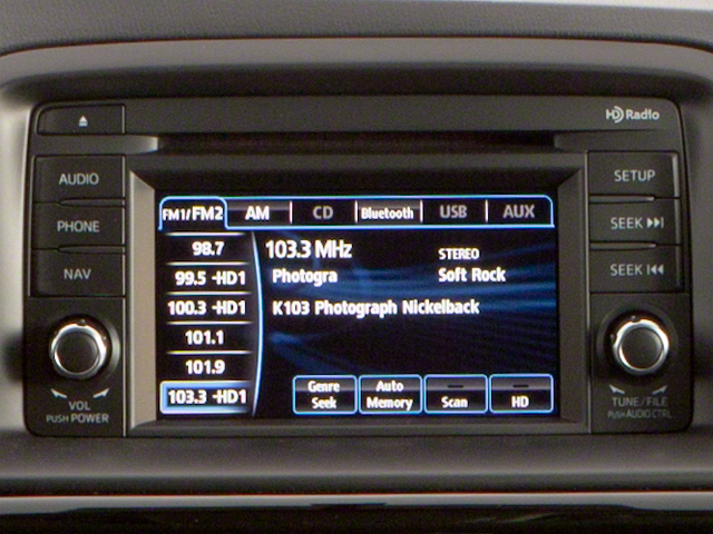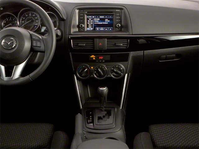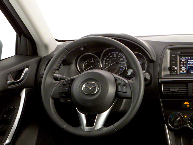 This Mazda CX-5 is well equipped with Grand Touring Technology Package (Advanced Keyless Entry System, Auto Dimming Rearview Mirror w/HomeLink, Bi-Xenon HID Headlights, and Burglar Alarm), 19 x 7J Aluminum Alloy Wheels, 4-Wheel Disc Brakes, 4.62 Axle Ratio, 9 Speakers, ABS brakes, Air Conditioning, Alloy wheels, AM/FM radio: SIRIUS, Automatic temperature control, Brake assist, Bumpers: body-color, CD player, Delay-off headlights, Driver door bin, Driver vanity mirror, Dual front impact airbags, Dual front side impact airbags, Electronic Stability Control, Exterior Parking Camera Rear, Four wheel independent suspension, Front anti-roll bar, Front Bucket Seats, Front Center Armrest, Front dual zone A/C, Front fog lights, Front reading lights, Fully automatic headlights, Heated door mirrors, Heated front seats, Illuminated entry, Leather Seat Trim, Leather Shift Knob, Low tire pressure warning, Navigation System, Occupant sensing airbag, Outside temperature display, Overhead airbag, Overhead console, Panic alarm, Passenger door bin, Passenger vanity mirror, Power door mirrors, Power driver seat, Power moonroof, Power steering, Power windows, Radio data system, Radio: AM/FM/CD/HD Modular Audio System w/Bose, Rain sensing wipers, Rear anti-roll bar, Rear reading lights, Rear seat center armrest, Rear window defroster, Rear window wiper, Remote keyless entry, Speed control, Speed-sensing steering, Split folding rear seat, Spoiler, Steering wheel mounted audio controls, Tachometer, Telescoping steering wheel, Tilt steering wheel, Traction control, Trip computer, Turn signal indicator mirrors, Variable Heated Front Sport Shape Seats, and Variably intermittent wipers.