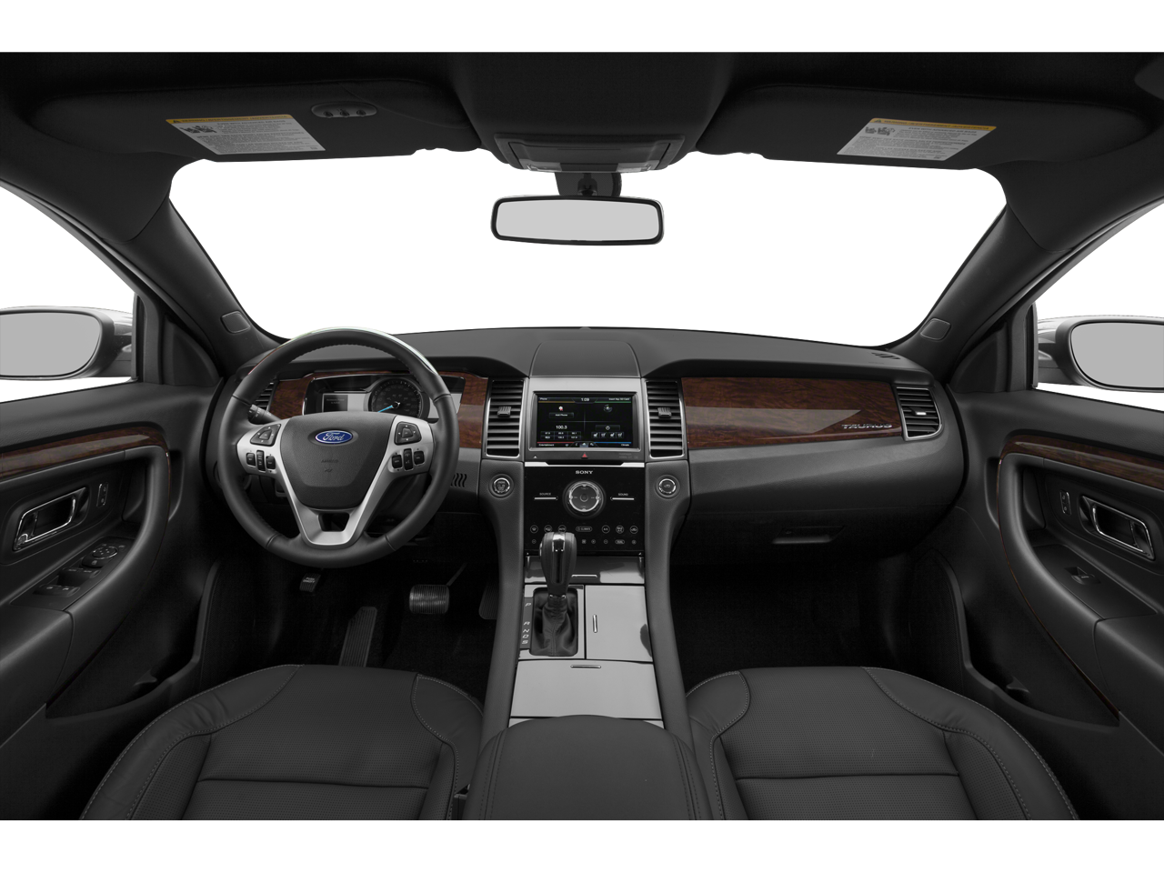 This Taurus is well equipped with Equipment Group 201A (Additional IP Center Channel Speaker, Intelligent Access w/Push Button Start, Non-Memory Power Adjustable Pedals, and SYNC w/MyFord Touch & SYNC Services), 18" Painted Aluminum Wheels, 4-Wheel Disc Brakes, 6 Speakers, ABS brakes, Air Conditioning, Alloy wheels, AM/FM radio: SiriusXM, AM/FM Stereo/Single CD/MP3 Capable, Auto-dimming Rear-View mirror, Automatic temperature control, Brake assist, Bumpers: body-color, CD player, Compass, Delay-off headlights, Driver door bin, Driver vanity mirror, Dual front impact airbags, Dual front side impact airbags, Electronic Stability Control, Exterior Parking Camera Rear, Four wheel independent suspension, Front anti-roll bar, Front Bucket Seats, Front Center Armrest, Front dual zone A/C, Front License Plate Bracket, Front reading lights, Fully automatic headlights, Heated door mirrors, Illuminated entry, Low tire pressure warning, Occupant sensing airbag, Outside temperature display, Overhead airbag, Overhead console, Panic alarm, Passenger door bin, Passenger vanity mirror, Power door mirrors, Power driver seat, Power passenger seat, Power steering, Power windows, Radio data system, Rear anti-roll bar, Rear Parking Sensors, Rear reading lights, Rear seat center armrest, Rear Spoiler, Rear window defroster, Remote keyless entry, Security system, Speed control, Speed-sensing steering, Speed-Sensitive Wipers, Split folding rear seat, Steering wheel mounted audio controls, SYNC w/MyFord, Tachometer, Telescoping steering wheel, Tilt steering wheel, Traction control, Trip computer, Unique Cloth Bucket Seats, Variably intermittent wipers, and Voice Activated Navigation.