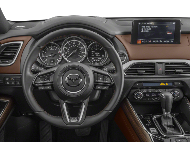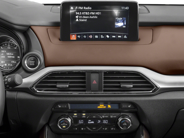 This Mazda CX-9 is well equipped with AWD, Navigation System, 12 Speakers, 3rd row seats: bench, 4-Wheel Disc Brakes, ABS brakes, Aha Internet Radio, Air Conditioning, Alloy wheels, AM/FM radio: SiriusXM, Auto High-beam Headlights, Auto-dimming Rear-View mirror, Automatic temperature control, Axle Ratio: 4.411, Brake assist, Bumpers: body-color, Carpeted Cargo Mat, Compass, Delay-off headlights, Driver door bin, Driver vanity mirror, Dual front impact airbags, Dual front side impact airbags, E911 Automatic Emergency Notification, Electronic Stability Control, Emergency communication system: Mazda Connect, Exterior Parking Camera Rear, Four wheel independent suspension, Front anti-roll bar, Front Bucket Seats, Front Center Armrest, Front dual zone A/C, Front fog lights, Front reading lights, Fully automatic headlights, Garage door transmitter: HomeLink, Genuine wood door panel insert, Heads-Up Display, Heated door mirrors, Heated Front Bucket Seats, Heated front seats, Illuminated entry, Infotainment System Voice Command, Lane Departure Warning System, Leather Shift Knob, Leather steering wheel, Low tire pressure warning, Memory seat, Nappa Leather Trimmed Seats, Occupant sensing airbag, Outside temperature display, Overhead airbag, Overhead console, Pandora Internet Radio, Panic alarm, Passenger door bin, Passenger vanity mirror, Power door mirrors, Power driver seat, Power Liftgate, Power moonroof, Power passenger seat, Power steering, Power windows, Radio Broadcast Data System Program Information, Radio data system, Radio: AM/FM Sound System w/Bose Audio, Rain sensing wipers, Rear air conditioning, Rear anti-roll bar, Rear Parking Sensors, Rear seat center armrest, Rear window defroster, Rear window wiper, Remote keyless entry, Roof rack: rails only, SIRIUSXM Satellite Radio, SMS Text Msg Audio Delivery & Reply, Speed control, Speed-sensing steering, Split folding rear seat, Spoiler, Steering wheel mounted audio controls, Stitcher Internet Radio, Tachometer, Telescoping steering wheel, Tilt steering wheel, Traction control, Trip computer, Turn signal indicator mirrors, Variably intermittent wipers, Wheel Locks, and Wheels: 20" x 8.5J Aluminum Alloy.