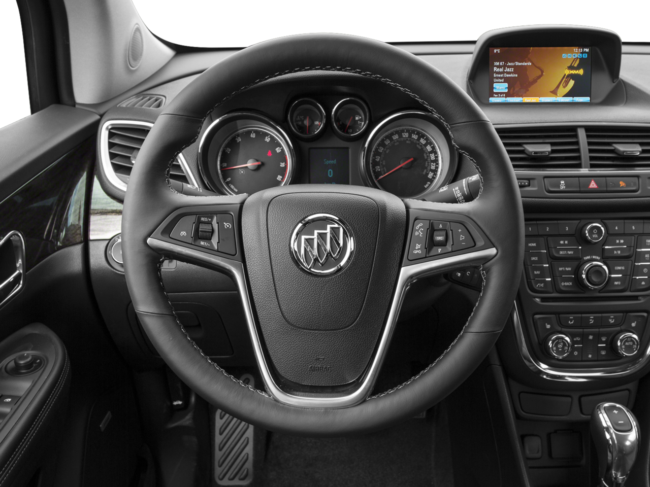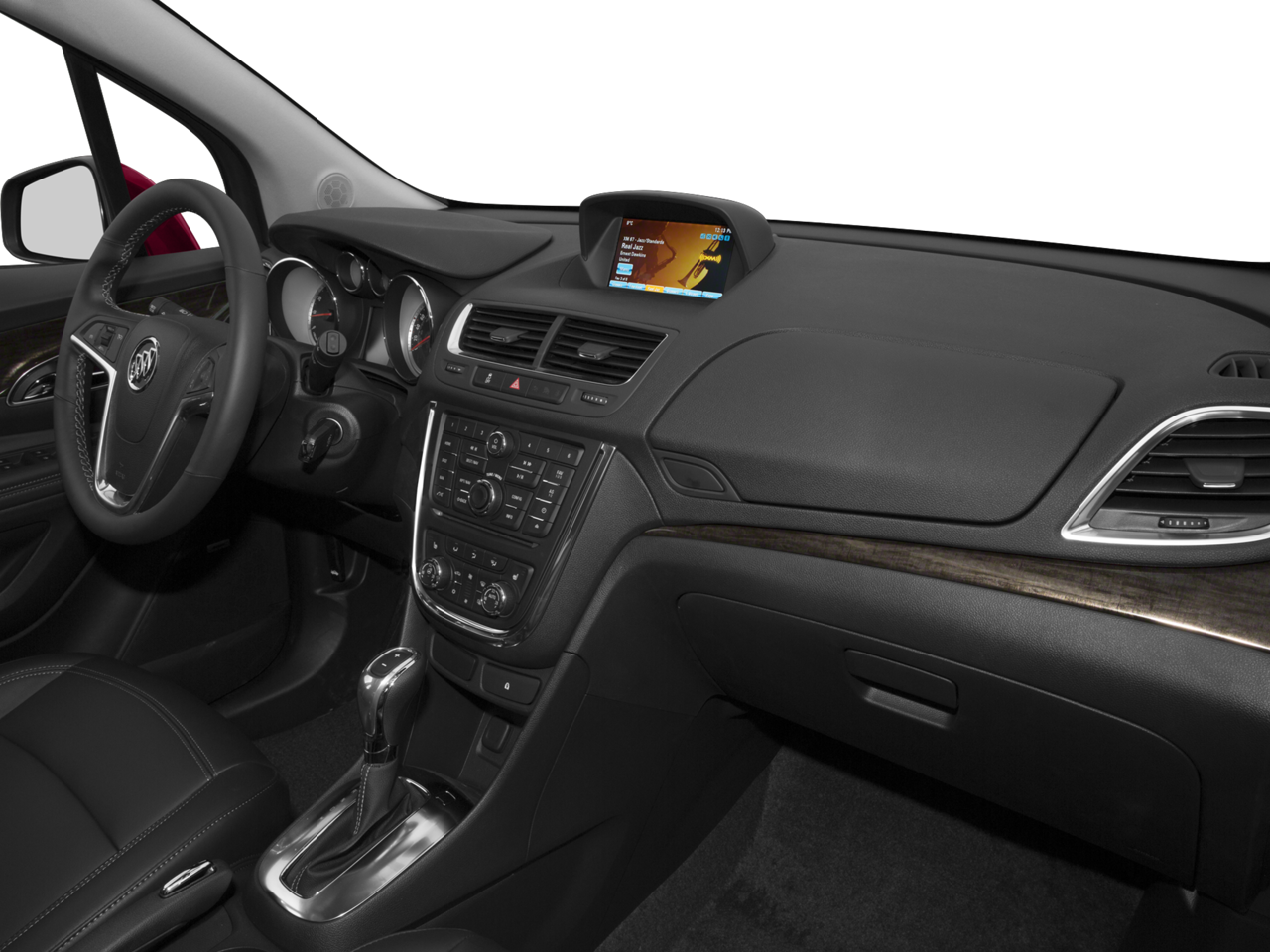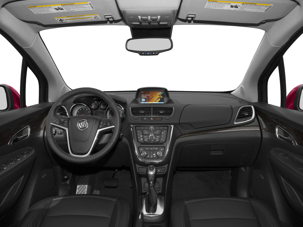 This Encore is well equipped with Experience Buick Package (18" 7-Spoke Chromed Aluminum Wheels, Power Tilt-Sliding Moonroof, Radio: AM/FM Audio System w/Nav/Single CD Player, and SiriusXM Satellite Radio), Preferred Equipment Group 1SL, 3.53 Final Drive Axle Ratio, 4-Wheel Disc Brakes, 6 Speakers, 6-Way Power Driver Seat Adjuster, 6-Way Power Front Passenger Seat Adjuster, ABS brakes, Air Conditioning, Alloy wheels, AM/FM radio: SiriusXM, Auto-dimming Rear-View mirror, Automatic temperature control, Brake assist, Bumpers: body-color, CD player, Compass, Delay-off headlights, Driver door bin, Driver vanity mirror, Driver's Seat Mounted Armrest, Dual front impact airbags, Dual front side impact airbags, Electronic Stability Control, Emergency communication system: OnStar Guidance, Exterior Parking Camera Rear, Front anti-roll bar, Front Bucket Seats, Front dual zone A/C, Front fog lights, Front License Plate Bracket, Front reading lights, Front wheel independent suspension, Fully automatic headlights, Heated door mirrors, Heated Driver & Front Passenger Seats, Heated front seats, Heated steering wheel, Illuminated entry, Knee airbag, Leather steering wheel, Leather-Appointed Seat Trim, Low tire pressure warning, Memory seat, Occupant sensing airbag, Outside temperature display, Overhead airbag, Panic alarm, Passenger door bin, Passenger vanity mirror, Power door mirrors, Power driver seat, Power passenger seat, Power steering, Power windows, Premium audio system: IntelliLink, Radio data system, Radio: AM/FM Audio System w/MP3 CD Player, Rear seat center armrest, Rear side impact airbag, Rear window defroster, Rear window wiper, Remote keyless entry, Ride & Handling Suspension, Roof rack: rails only, Security system, Speed control, Speed-sensing steering, Split folding rear seat, Spoiler, Steering wheel mounted audio controls, Tachometer, Telescoping steering wheel, Tilt steering wheel, Traction control, Trip computer, Turn signal indicator mirrors, Variably intermittent wipers, and Wheels: 18" 5-Spoke Cast Aluminum.