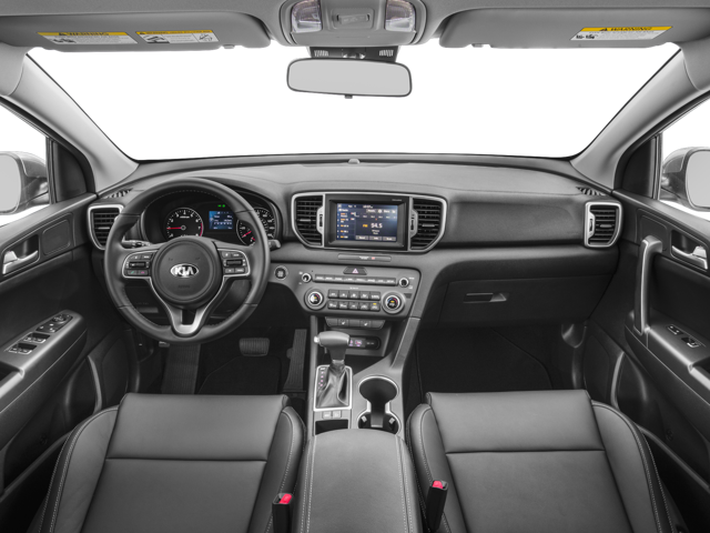 This Sportage is well equipped with 18" Alloy Wheels, 3-Step Heated Front Bucket Seats, 3.064 Axle Ratio, 4-Wheel Disc Brakes, 6 Speakers, ABS brakes, Air Conditioning, Alloy wheels, AM/FM radio: SiriusXM, Android Auto, Automatic temperature control, Brake assist, Bumpers: body-color, Cargo Cover, Cargo Mat, Carpet Floor Mats, Delay-off headlights, Driver door bin, Driver vanity mirror, Dual front impact airbags, Dual front side impact airbags, Electronic Stability Control, Exterior Parking Camera Rear, Four wheel independent suspension, Front anti-roll bar, Front Bucket Seats, Front Center Armrest, Front dual zone A/C, Front fog lights, Front reading lights, Fully automatic headlights, Heated door mirrors, Heated front seats, Illuminated entry, Leather Seat Trim, Leather Shift Knob, Low tire pressure warning, Mud Guards, Occupant sensing airbag, Outside temperature display, Overhead airbag, Overhead console, Panic alarm, Passenger door bin, Passenger vanity mirror, Power door mirrors, Power driver seat, Power steering, Power windows, Radio: AM/FM/SiriusXM, Rear anti-roll bar, Rear seat center armrest, Rear window defroster, Rear window wiper, Remote keyless entry, Remote Start (Push-Button Start), Roof rack: rails only, Security system, Speed control, Speed-sensing steering, Split folding rear seat, Spoiler, Steering wheel mounted audio controls, Tachometer, Telescoping steering wheel, Tilt steering wheel, Traction control, Trip computer, Variably intermittent wipers, and Wheel Locks.