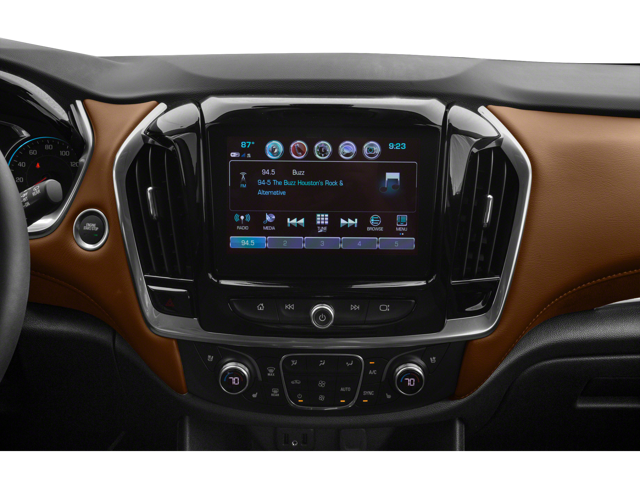 This Traverse is well equipped with Front License Plate Bracket Mounting Package, Preferred Equipment Group 1LZ, Redline Edition (Black Door Handles, Dual SkyScape 2-Panel Power Sunroof, Ornamentation, and Wheels: 20" Gloss Black Painted Alum w/Red Stripes), Trailering Equipment (Heavy-Duty Cooling System), AWD, 10 Speakers, 3.49 Axle Ratio, 3rd row seats: split-bench, 4-Wheel Disc Brakes, 7-Passenger Seating (2-2-3 Seating Configuration), ABS brakes, Air Conditioning, Alloy wheels, AM/FM radio: SiriusXM, Apple CarPlay/Android Auto, Auto High-beam Headlights, Auto-dimming door mirrors, Auto-dimming Rear-View mirror, Automatic temperature control, Bose Premium 10-Speaker Audio System Feature, Brake assist, Bumpers: body-color, Compass, Delay-off headlights, Driver door bin, Driver vanity mirror, Dual front impact airbags, Dual front side impact airbags, Electronic Stability Control, Emergency communication system: OnStar Guidance, Four wheel independent suspension, Front anti-roll bar, Front Bucket Seats, Front Center Armrest, Front dual zone A/C, Front fog lights, Front reading lights, Fully automatic headlights, Garage door transmitter, Heated door mirrors, Heated front seats, Heated rear seats, Heated steering wheel, Illuminated entry, Low tire pressure warning, Memory seat, Navigation System, Occupant sensing airbag, Outside temperature display, Overhead airbag, Overhead console, Panic alarm, Passenger door bin, Passenger vanity mirror, Perforated Leather-Appointed Seat Trim, Power door mirrors, Power driver seat, Power Liftgate, Power passenger seat, Power steering, Power windows, Premium audio system: Chevrolet MyLink, Radio data system, Radio: Chevrolet MyLink AM/FM Stereo w/Navigation, Rear air conditioning, Rear anti-roll bar, Rear reading lights, Rear window defroster, Rear window wiper, Remote keyless entry, Roof rack: rails only, Security system, SiriusXM Satellite Radio, Speed control, Speed-sensing steering, Spoiler, Steering wheel memory, Steering wheel mounted audio controls, Tachometer, Telescoping steering wheel, Tilt steering wheel, Traction control, Trip computer, Turn signal indicator mirrors, Variably intermittent wipers, Ventilated front seats, Voltmeter, and Wheels: 20" Argent Metallic Machine Faced Aluminum.