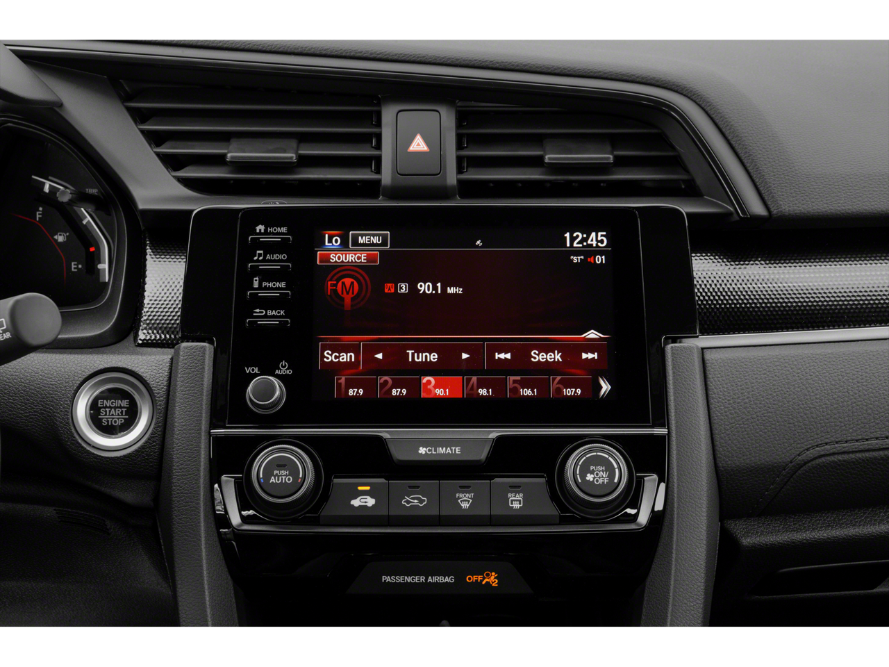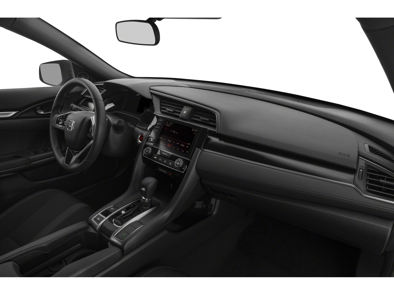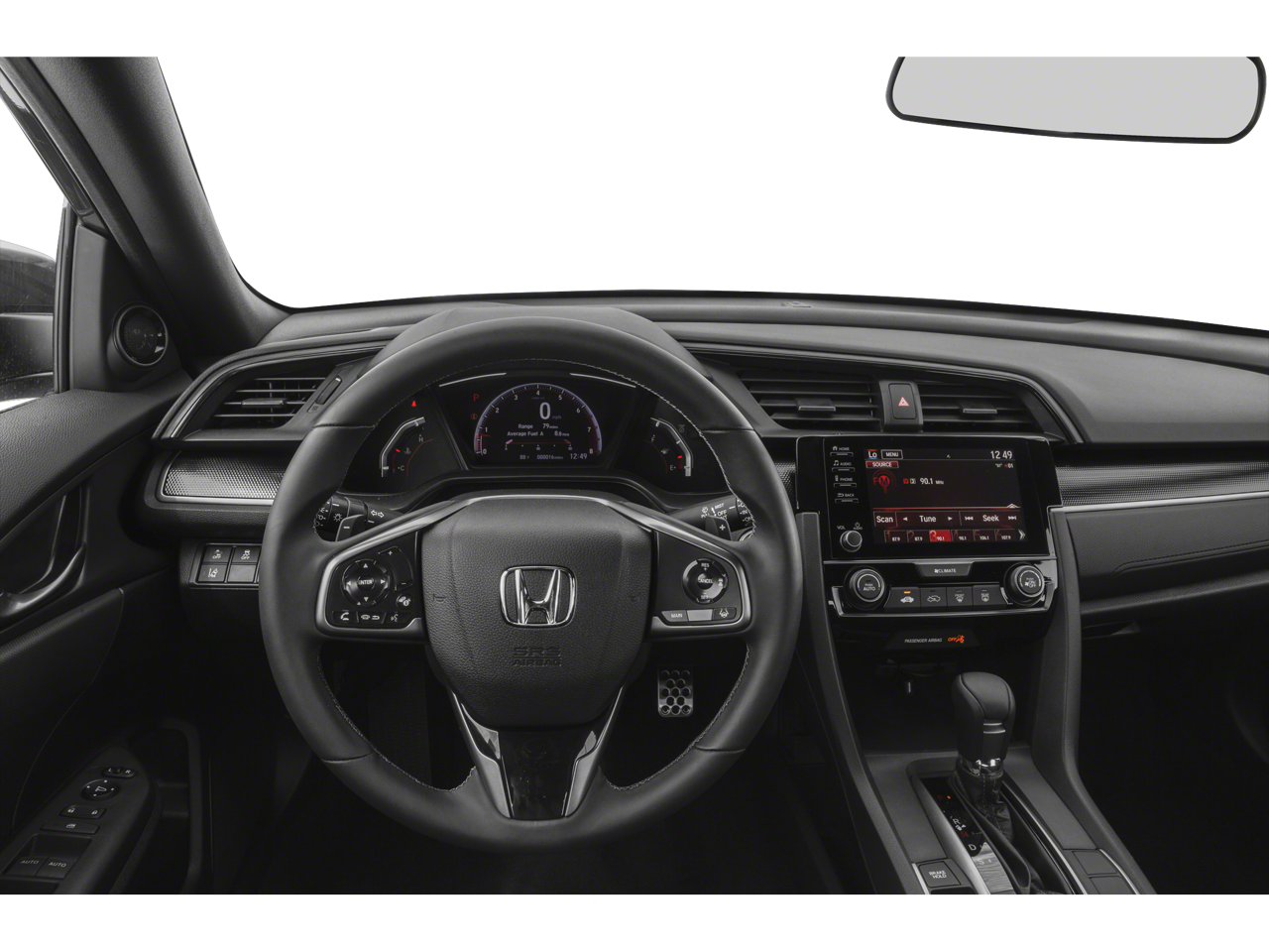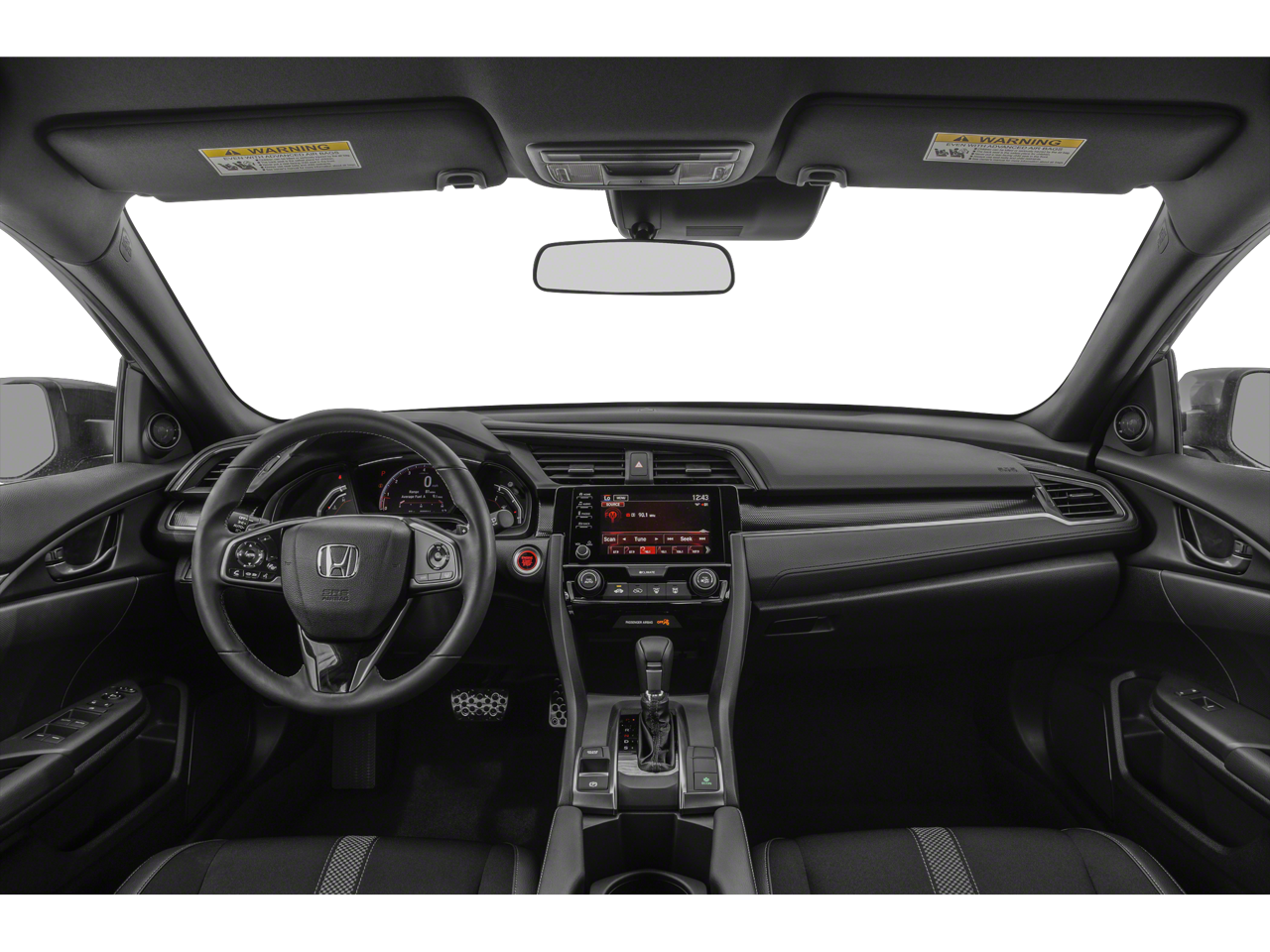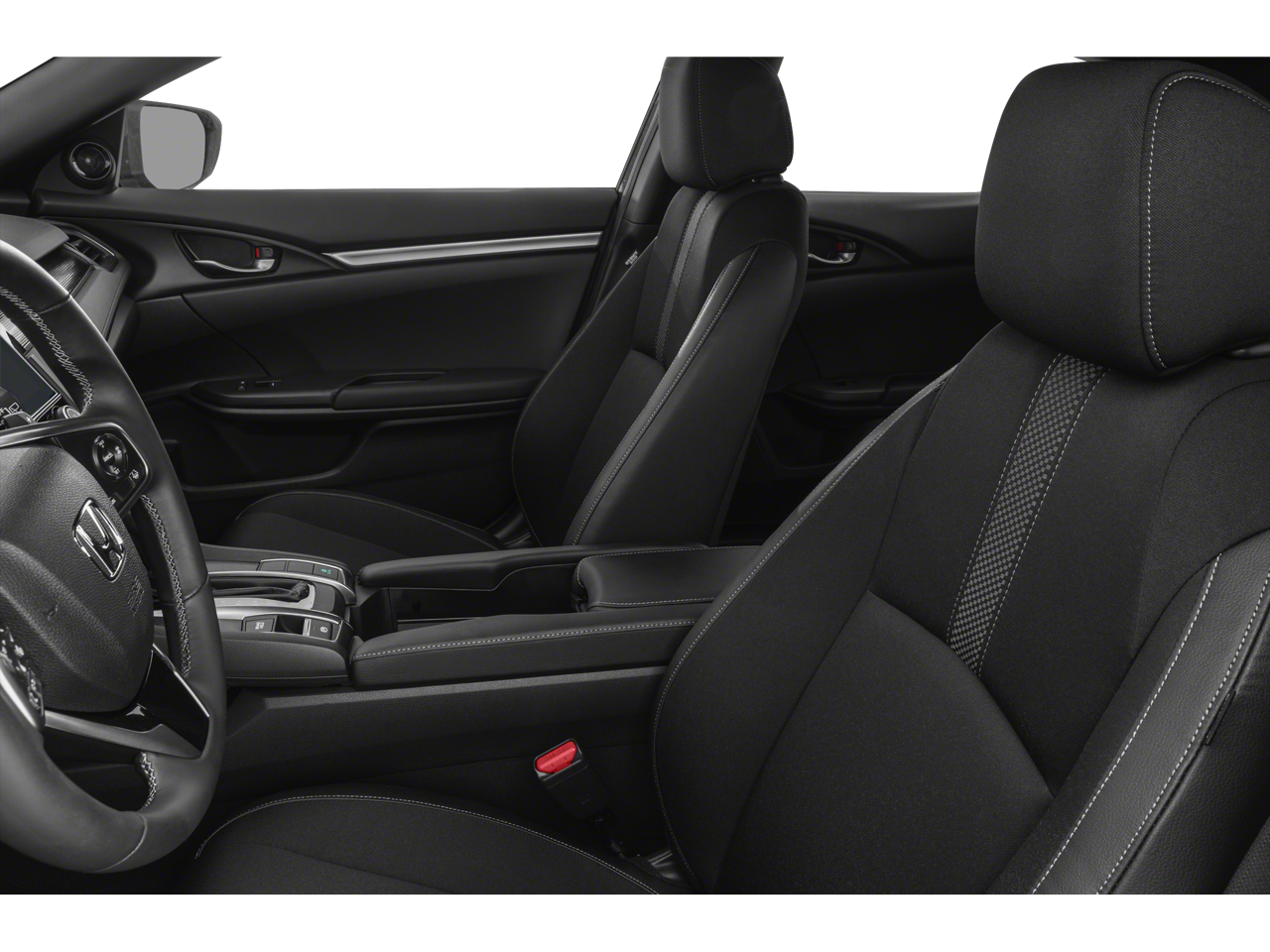 This Civic is well equipped with Cloth, 18" Alloy Wheels, 4-Wheel Disc Brakes, 8 Speakers, ABS brakes, Adaptive Cruise Control: Adaptive Cruise Control (ACC) with Low-Speed Follow, Air Conditioning, Alloy wheels, AM/FM radio, Apple CarPlay/Android Auto, Auto High-beam Headlights, Automatic temperature control, Brake assist, Bumpers: body-color, Delay-off headlights, Driver door bin, Driver vanity mirror, Dual front impact airbags, Dual front side impact airbags, Electronic Stability Control, Emergency communication system: HondaLink, Exterior Parking Camera Rear, Fabric Seating Surfaces, Forward collision: Collision Mitigation Braking System (CMBS) + FCW mitigation, Four wheel independent suspension, Front anti-roll bar, Front Bucket Seats, Front Center Armrest, Front fog lights, Front reading lights, Fully automatic headlights, Illuminated entry, Lane departure: Lane Keeping Assist System (LKAS) active, Leather Shift Knob, Low tire pressure warning, Occupant sensing airbag, Outside temperature display, Overhead airbag, Panic alarm, Passenger door bin, Passenger vanity mirror, Power door mirrors, Power steering, Power windows, Radio data system, Radio: 180-Watt Audio System w/8 Speakers, Rear anti-roll bar, Rear seat center armrest, Rear window defroster, Rear window wiper, Remote keyless entry, Security system, Speed control, Speed-sensing steering, Split folding rear seat, Spoiler, Steering wheel mounted audio controls, Tachometer, Telescoping steering wheel, Tilt steering wheel, Traction control, and Trip computer.