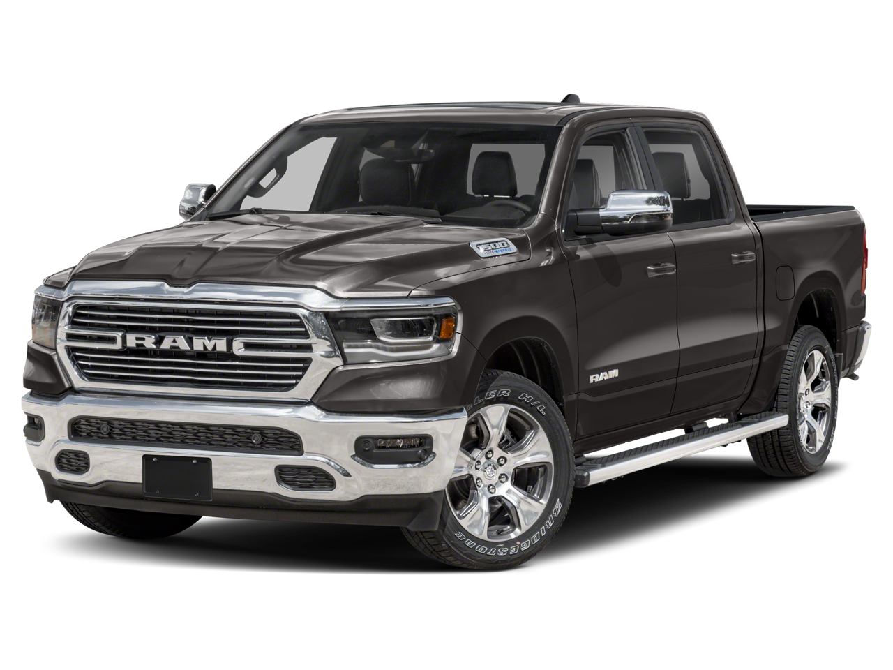 This 1500 is well equipped with Bed Utility Group (MOPAR 4 Adjustable Cargo Tie-Down Hooks, MOPAR Spray In Bedliner, and Pick-Up Box Lighting), Laramie Level 1 Equipment Group (12" Touchscreen Display, 2nd Row In Floor Storage Bins, 4G LTE Wi-Fi Hot Spot, Apple CarPlay, Auto High Beam Headlamp Control, Blind Spot & Cross Path Detection, Connected Travel & Traffic Services, Connectivity - US/Canada, Disassociated Touchscreen Display, Electric Shift-On-Demand Transfer Case, Foam Bottle Insert (Door Trim Panel), For Details, Visit DriveUconnect.com, For More Info, Call 800-643-2112, Front Door Accent Lighting, Front LED Fog Lamps, Global Telematics Box Module (TBM), Google Android Auto, GPS Antenna Input, GPS Navigation, HD Radio, Integrated Center Stack Radio, Integrated Voice Command w/Bluetooth®, LED Reflector Headlamps, Radio: Uconnect 5 Nav w/12.0" Display, Rain Sensitive Windshield Wipers, Rear Door Accent Lighting, Rear Power Sliding Window, Rear Window Defroster, Remote Tailgate Release, SiriusXM Radio Service, SiriusXM w/360L, and USB Host Flip), Quick Order Package 27H Laramie, #1 Seat Foam Cushion, 10 Speakers, 3 Rear Seat Head Restraints, 3.21 Rear Axle Ratio, 4 Way Front Headrests, 4-Wheel Disc Brakes, 48V Belt Starter Generator, ABS brakes, Adjustable pedals, Air Conditioning, Alloy wheels, AM/FM radio: SiriusXM with 360L, Apple CarPlay/Android Auto, Audio memory, Auto-dimming door mirrors, Auto-Dimming Exterior Driver Mirror, Auto-dimming Rear-View mirror, Automatic temperature control, Brake assist, Bumpers: chrome, Chrome Exterior Mirrors, Class IV Receiver Hitch, Compass, Convex Wide-Angle Exterior Mirror Insert, Delay-off headlights, Dome Dual LED Reading Lamp, Driver door bin, Driver Seat Memory, Driver vanity mirror, Dual front impact airbags, Dual front side impact airbags, Dual-Pane Panoramic Sunroof, Electronic Stability Control, Exterior Mirrors Courtesy Lamps, Exterior Mirrors w/Heating Element, Exterior Mirrors w/Memory, Exterior Mirrors w/Supplemental Signals, Front anti-roll bar, Front Center Armrest w/Storage, Front dual zone A/C, Front fog lights, Front License Plate Bracket, Front reading lights, Front Seat Back Map Pockets, Front wheel independent suspension, Fully automatic headlights, Garage door transmitter, Heated door mirrors, Heated Front Seats, Heated front seats, Heated Steering Wheel, Heated steering wheel, Illuminated entry, Leather steering wheel, Leather Trim 40/20/40 Bench Seat, LED Dome/Reading Lamp, Low tire pressure warning, Memory seat, MOPAR Front & Rear Rubber Floor Mats, Navigation System, Occupant sensing airbag, Outside temperature display, Overhead airbag, Overhead console, Panic alarm, ParkSense Front/Rear Park Assist w/Stop (DISC), ParkView Rear Back-Up Camera, Passenger door bin, Passenger vanity mirror, Pedal memory, Power 2-Way Driver Lumbar Adjust, Power 2-Way Passenger Lumbar Adjust, Power 8-Way Driver & Passenger Seats, Power door mirrors, Power driver seat, Power passenger seat, Power steering, Power windows, Power-Folding Mirrors, Radio data system, Radio: Uconnect 5 Nav w/8.4" Display, RAM Grille Badge - Chrome, Rear 60/40 Folding Seat, Rear anti-roll bar, Rear seat center armrest, Rear step bumper, Rear Wheelhouse Liners, Remote keyless entry, Security system, Speed control, Split folding rear seat, Steering wheel mounted audio controls, Tachometer, Telescoping steering wheel, Tilt steering wheel, Traction control, Trip computer, Turn signal indicator mirrors, Variably intermittent wipers, Ventilated Front Seats, Ventilated front seats, Voltmeter, Wheel to Wheel Side Steps, Wheels: 18" x 8" Aluminum Base Painted, and Wheels: 20" x 9" Premium Paint/Polished.